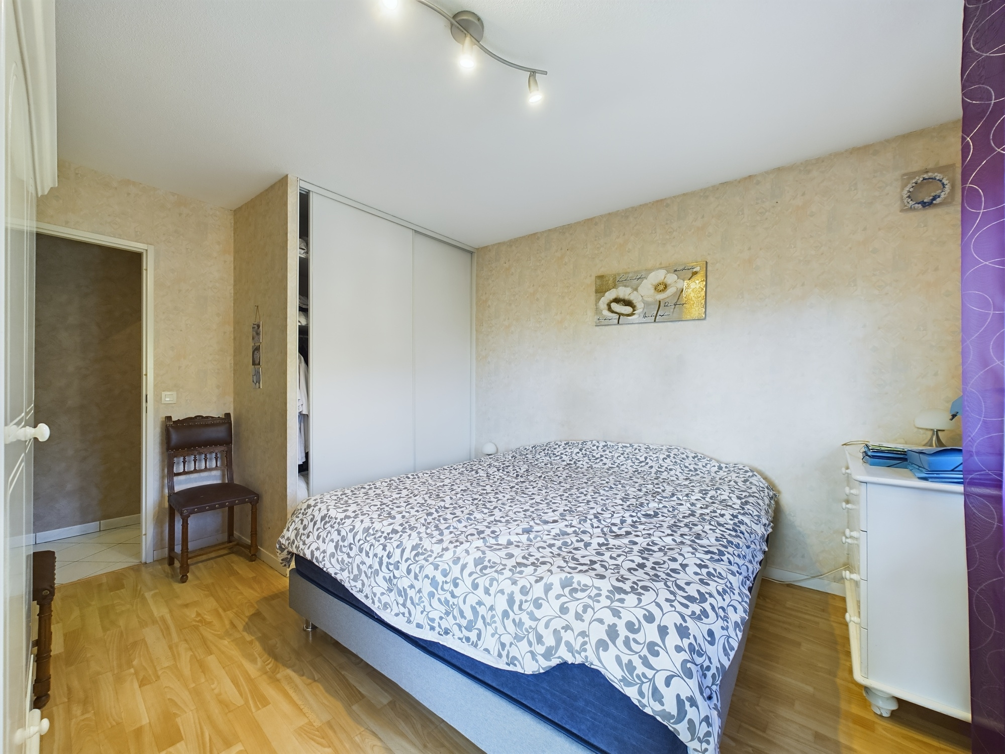 L’appartement comprend également deux chambres donnant également sur le balcon, une salle d'eau, des WC séparés et un dégagement pratique pour des rangements supplémentaires.