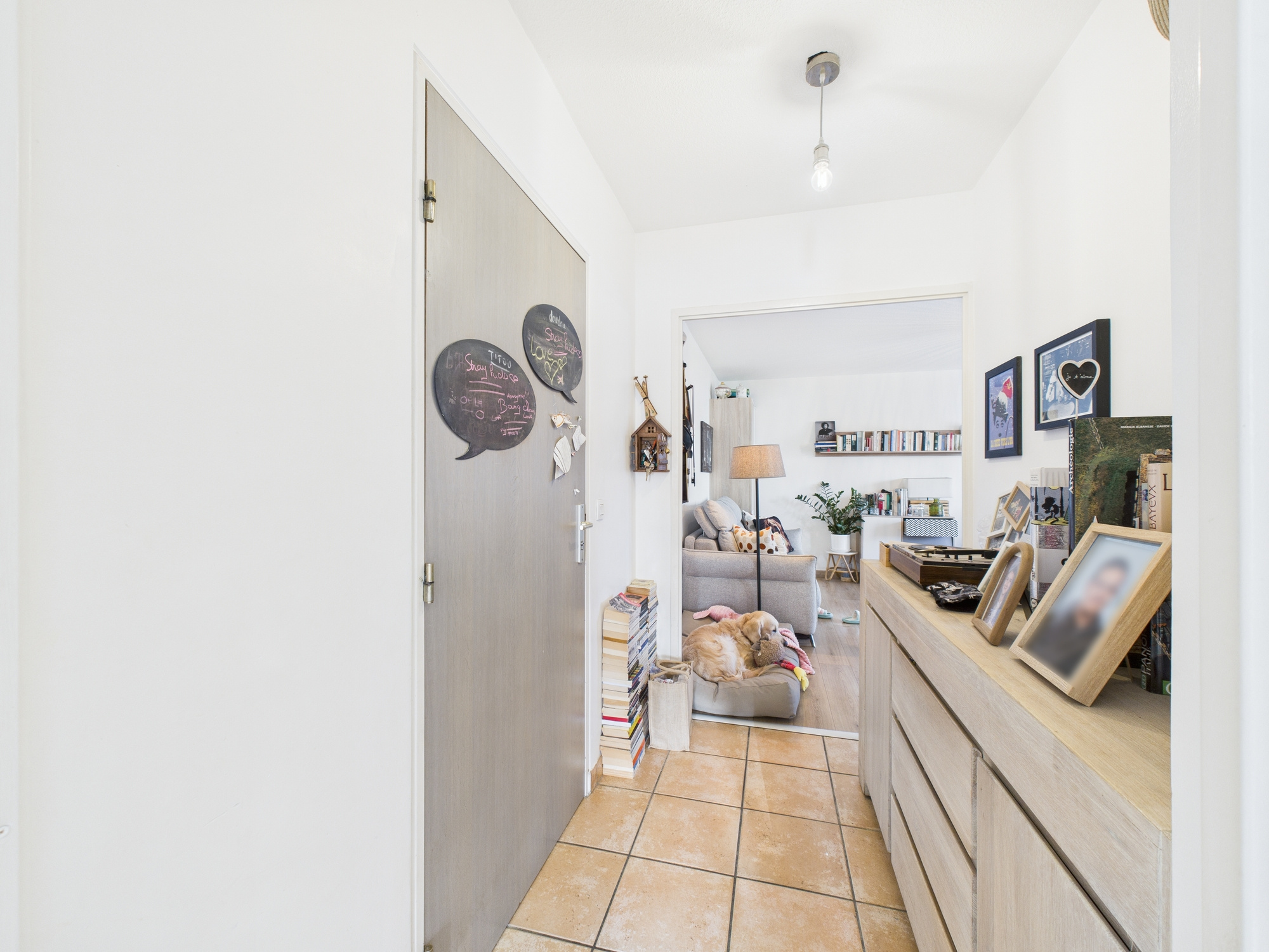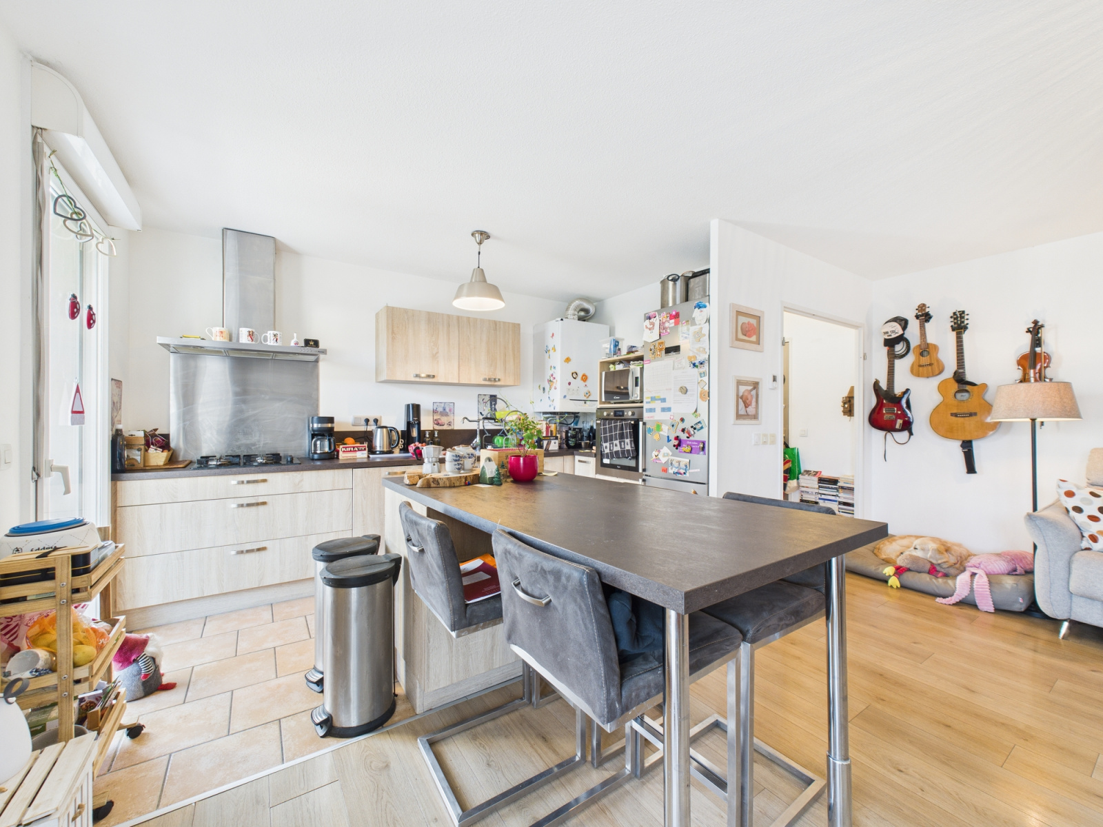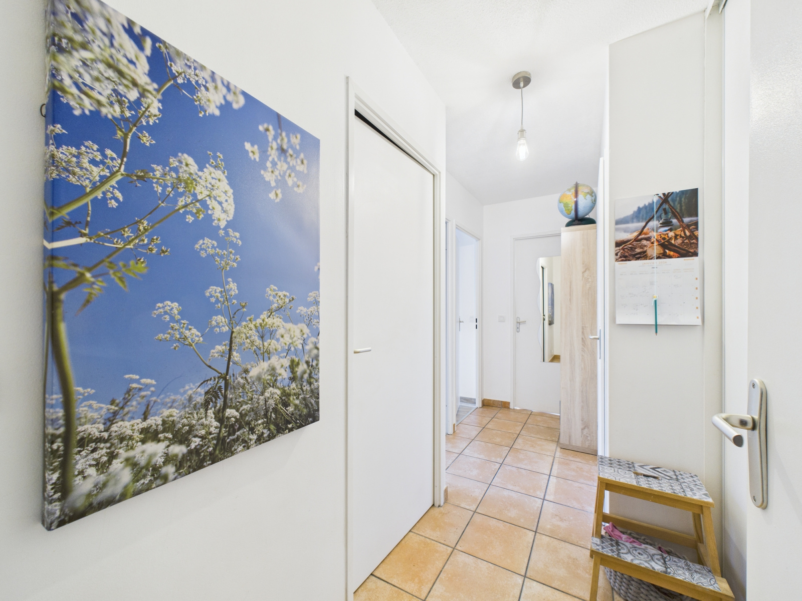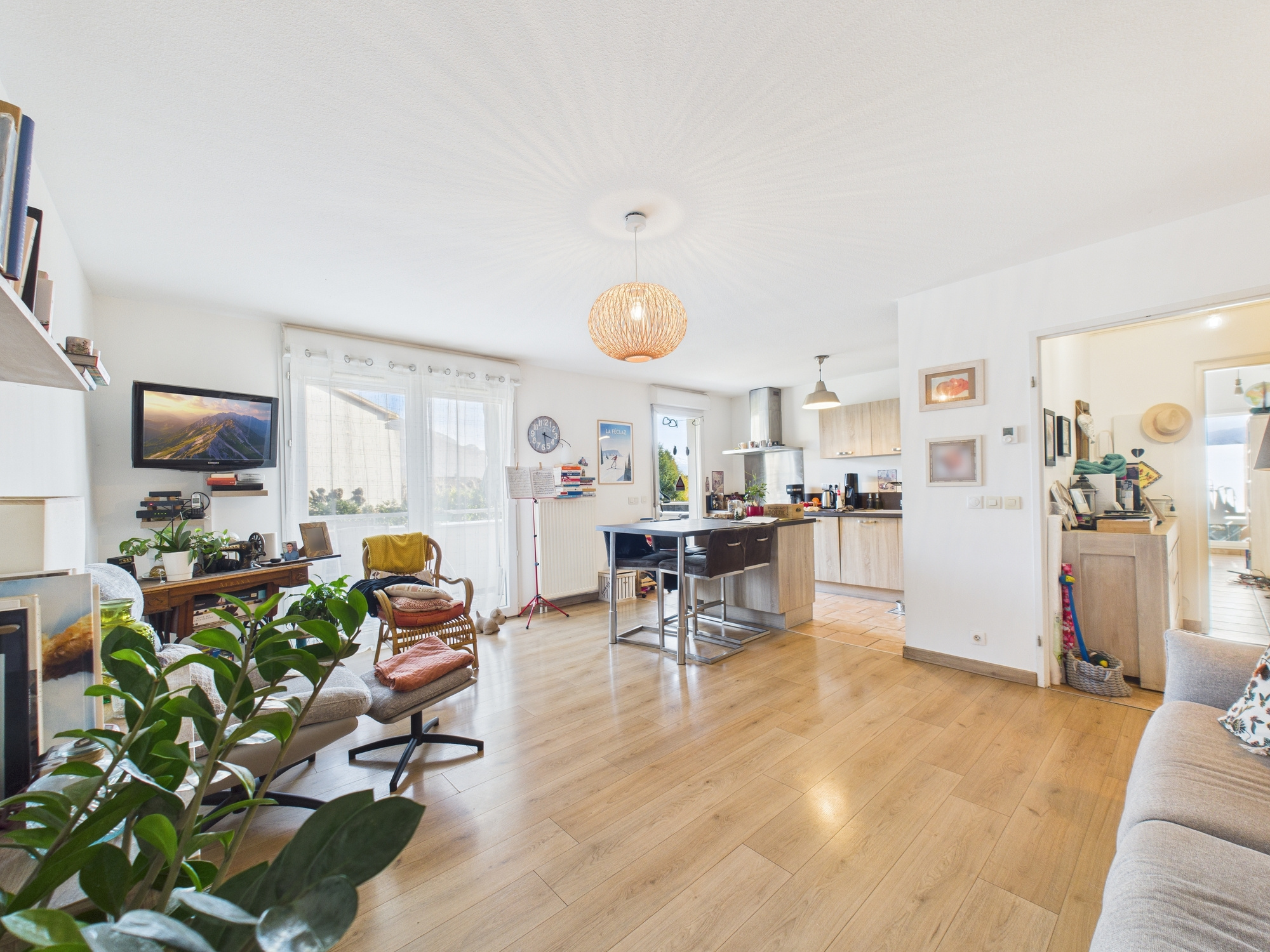 Ce bien se compose d’un hall d’entrée desservant une cuisine ouverte sur le séjour, offrant un accès direct à un balcon.