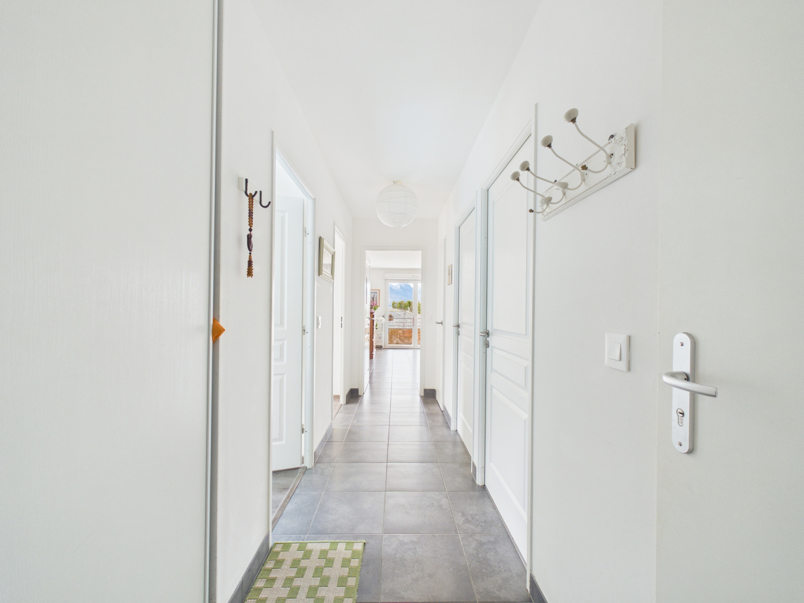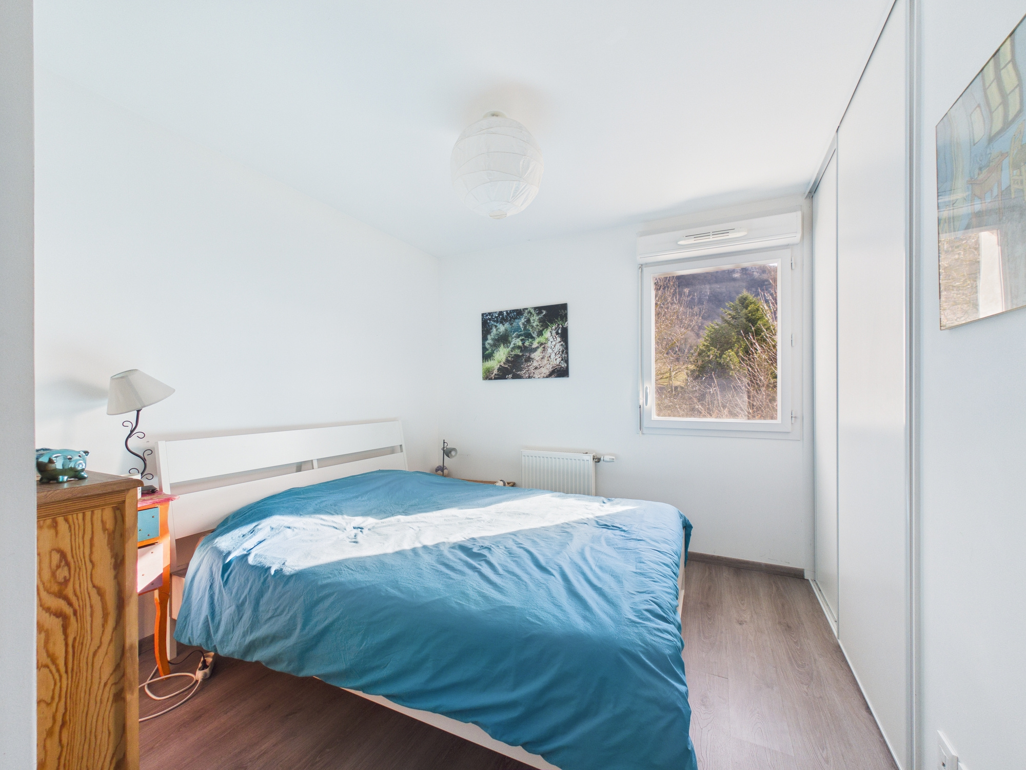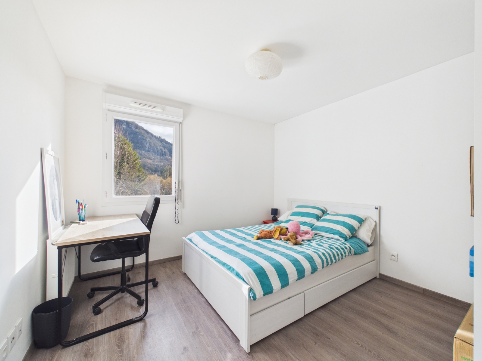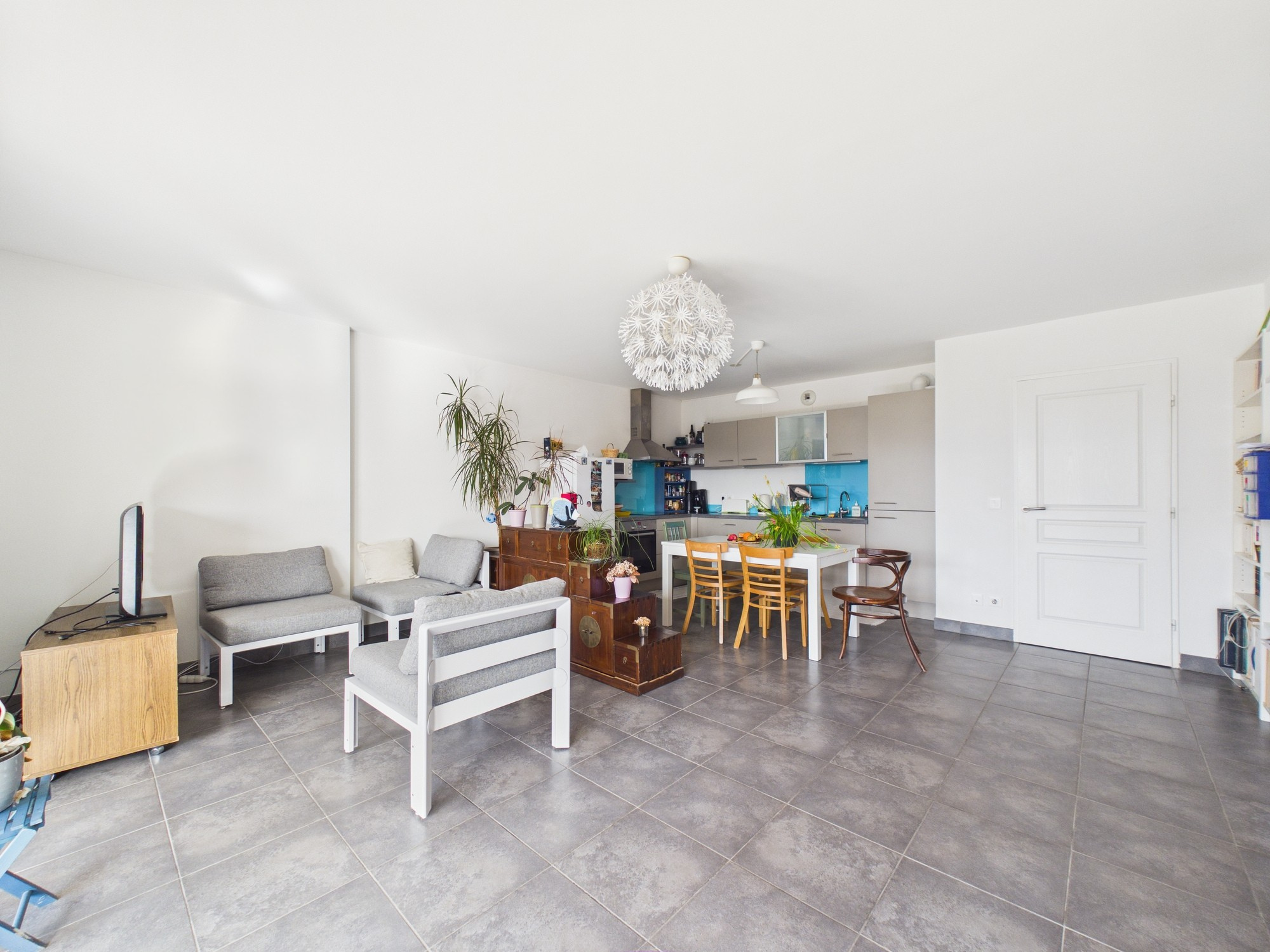 Dès l’entrée, vous découvrez un espace de vie lumineux et parfaitement agencé. La cuisine aménagée et équipée, ouverte sur un salon-séjour convivial, offre un accès direct à une spacieuse terrasse avec vue dégagée sur les montagnes — un véritable prolongement de votre espace de vie, idéal pour vos moments de détente.