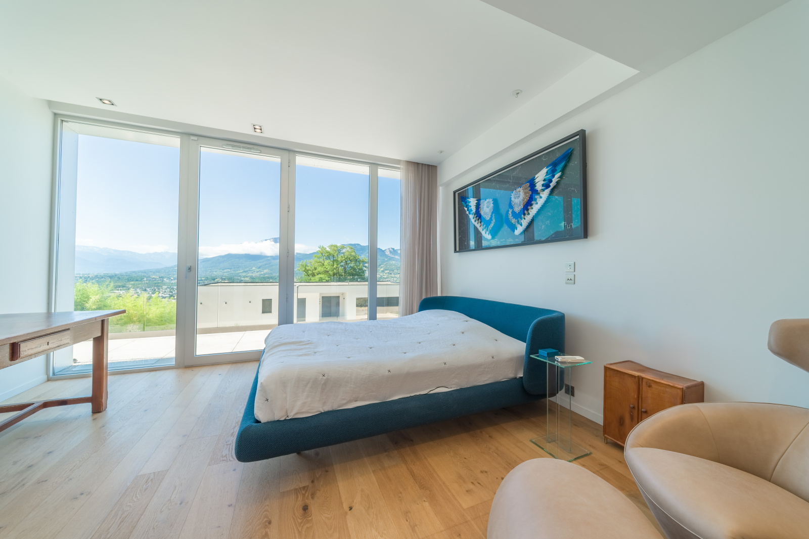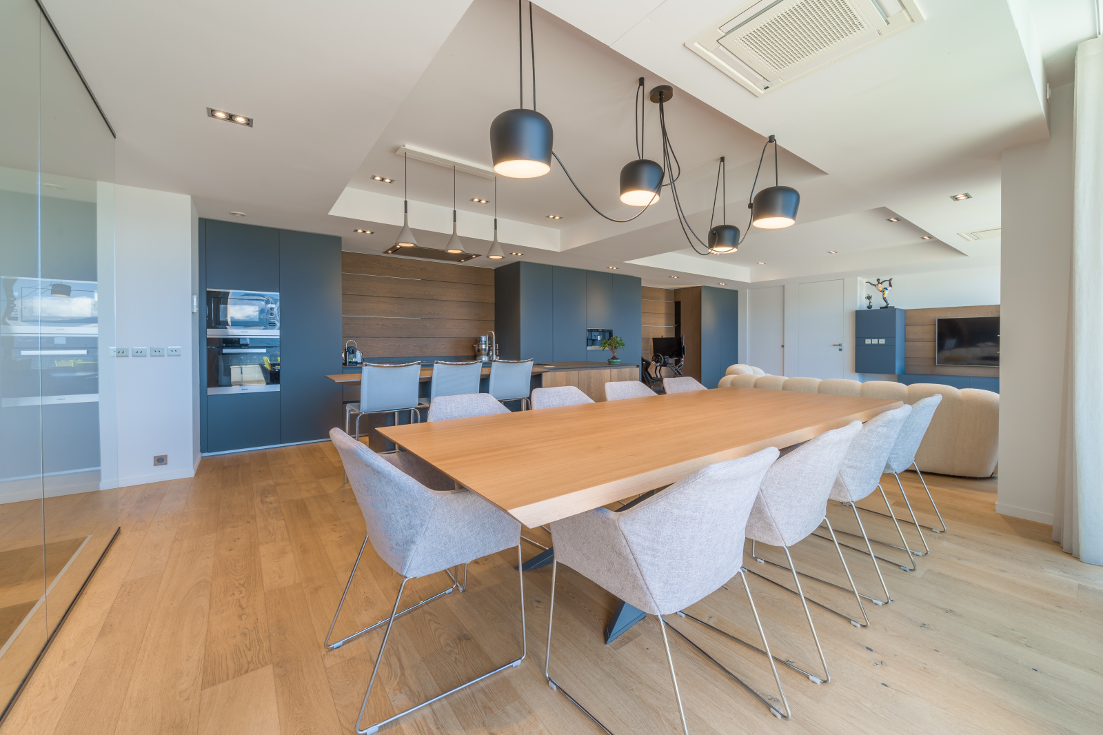 - Grande pièce de vie lumineuse de 60 m² : salon, séjour et cuisine équipée haut de gamme Modulnova, pour des moments conviviaux face à la lumière et aux montagnes.