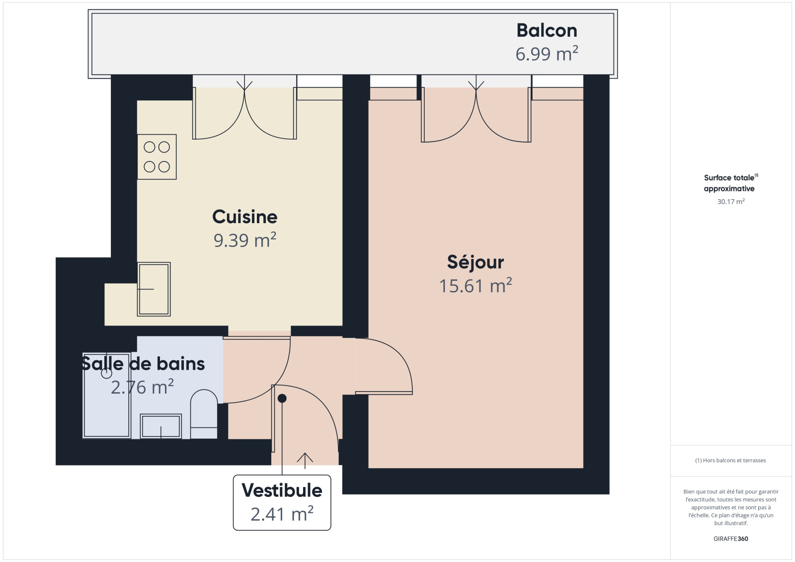 Totalisant 27m², l'intérieur comprend actuellement un espace salon nuit, un espace cuisine et une salle d'eau. L'appartement est vendu meublé et dispose d'un grenier inclu dans le prix de vente.