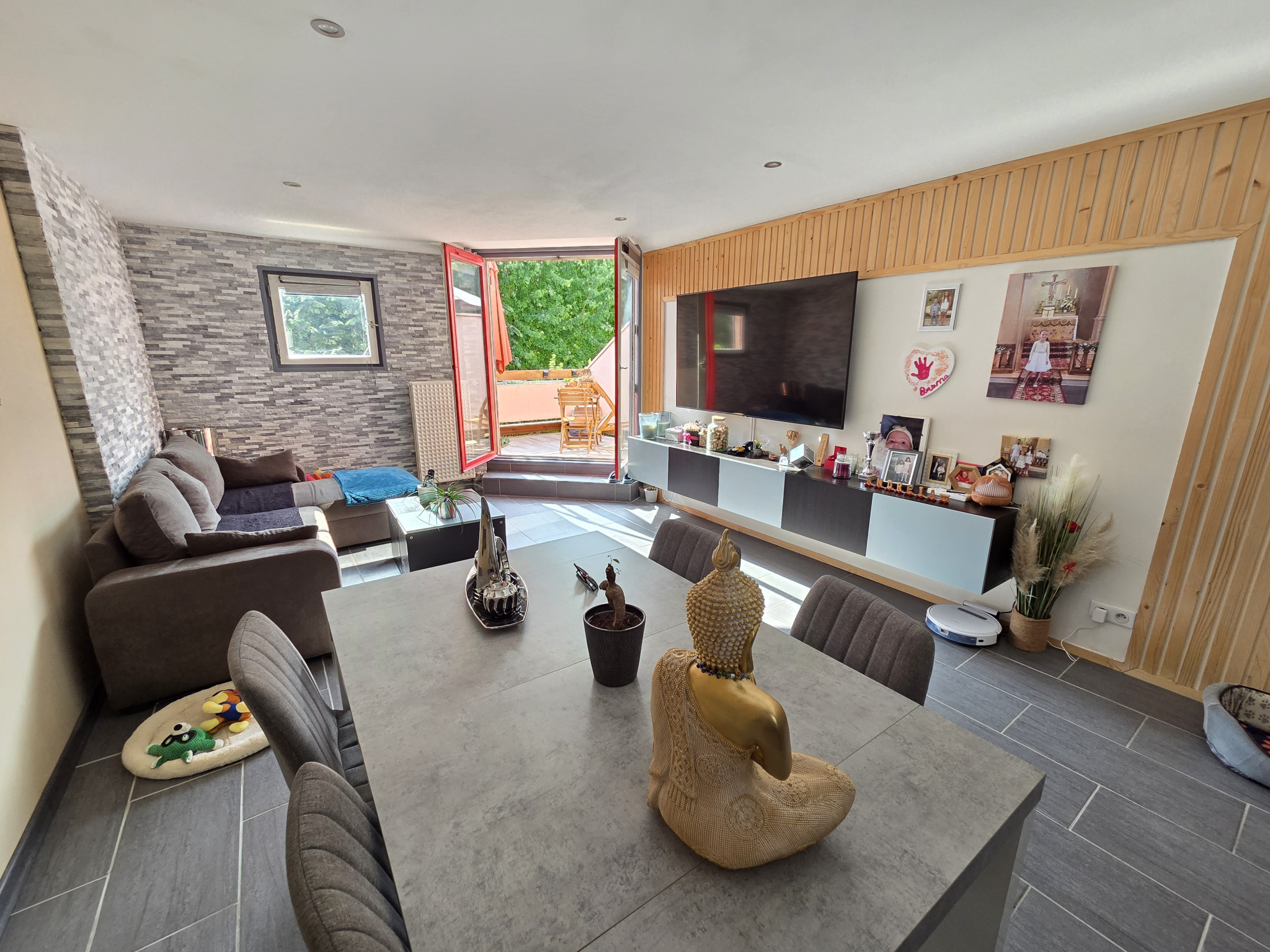 Situé au 1er étage d’un immeuble de 2 niveaux construit en 1983, ce logement de 68 m² offre de beaux volumes et un cadre de vie agréable. Il se compose d’un séjour lumineux de 22 m² avec cuisine équipée ouverte, de deux chambres, d’une salle d’eau ainsi que d’une loggia attenante de 5,71 m². Vous pourrez également profiter d’une terrasse de 8 m² donnant sur les espaces verts, idéale pour partager vos repas en extérieur. L’ensemble offre une surface utile de 81 m². Un grand garage avec mezzanine vient compléter ce bien, représentant un véritable atout. Cet appartement constitue une belle opportunité pour une famille monoparentale ou un jeune couple en quête d’un logement fonctionnel et chaleureux.