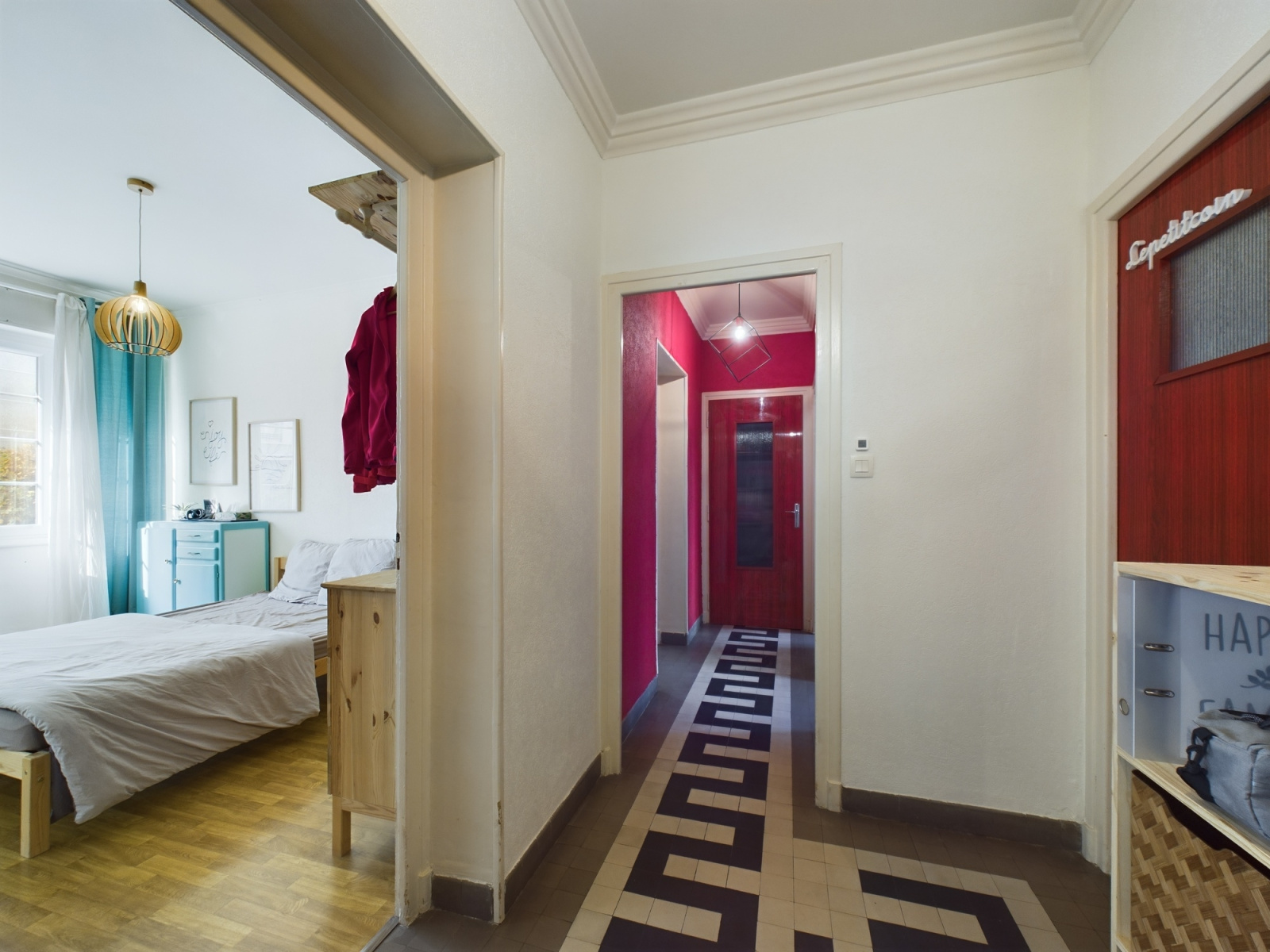 Appartement de type 4 composé d'une entrée, d'un salon/séjour, d'une cuisine, de trois chambres, d'une salle d'eau et d'un WC séparé.