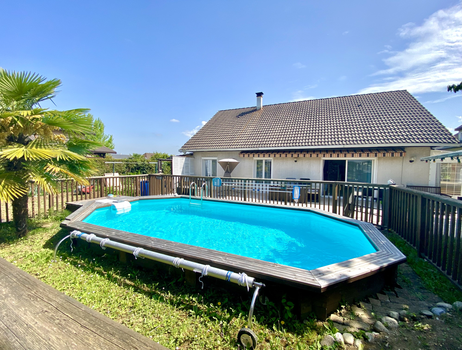 Située dans le quartier résidentiel très prisé de Bissy, au calme et à proximité du centre-ville (moins de 10 minutes), venez découvrir cette belle maison de plain pied d'une superficie de 102,78m² implantée sur une parcelle de terrain de 765m² entiérement clôturée. Le bien se compose d'une grande pièce de vie lumineuse de 42m² comprenant un espace salle à manger et un coin salon avec son poêle à granulés ainsi qu'une cuisine américaine toute équipée et fonctionnelle de plus de 15m². Côté nuit, vous trouverez une belle chambre parentale de 12,59m² avec accès sur la terrasse, deux chambres d'envrion 9m² chacune, une salle d'eau de plus de 7m² et un wc séparé. La maison dispose d'un sous-sol complet aménageable comprenant un espace bureau, garage/atelier avec de nombreux rangements et une pièce aménagée en cave à vins permettant de recevoir chaleureusement vos convives. La partie extérieure, principalement exposée Sud/Ouest, offre de beaux espaces : Vous pourrez profiter de la terrasse de 71m² et notamment d'un coin abrité avec jacuzzi et salon d'été, un coin jeux pour les enfants, une belle piscine semi-enterée et sécurisée de 7mx4m, un terrain de pétanque ainsi qu'un grand potager. Le stationnement se fera aisément pour 2/3 véhicules grâce à la cour située à l'arrière de la maison. De plus, le bien étant situé en bout d'allée vous bénéficierez d'un parking public à proximité direct. Emplacement privilégié, proche de toutes commodités et des transports en commun. Bien rare à la vente avec de nombreuses possibilités d'aménagements. A saisir rapidement ! La taxe foncière annuelle s'élève à 1600€. Honoraires d'agence à la charge du vendeur. Pour toutes informations complémentaires ou si vous souhaitez organiser une visite, contactez Jade Neple au 0660894953 ou par mail j.neple@easyventeimmo.fr