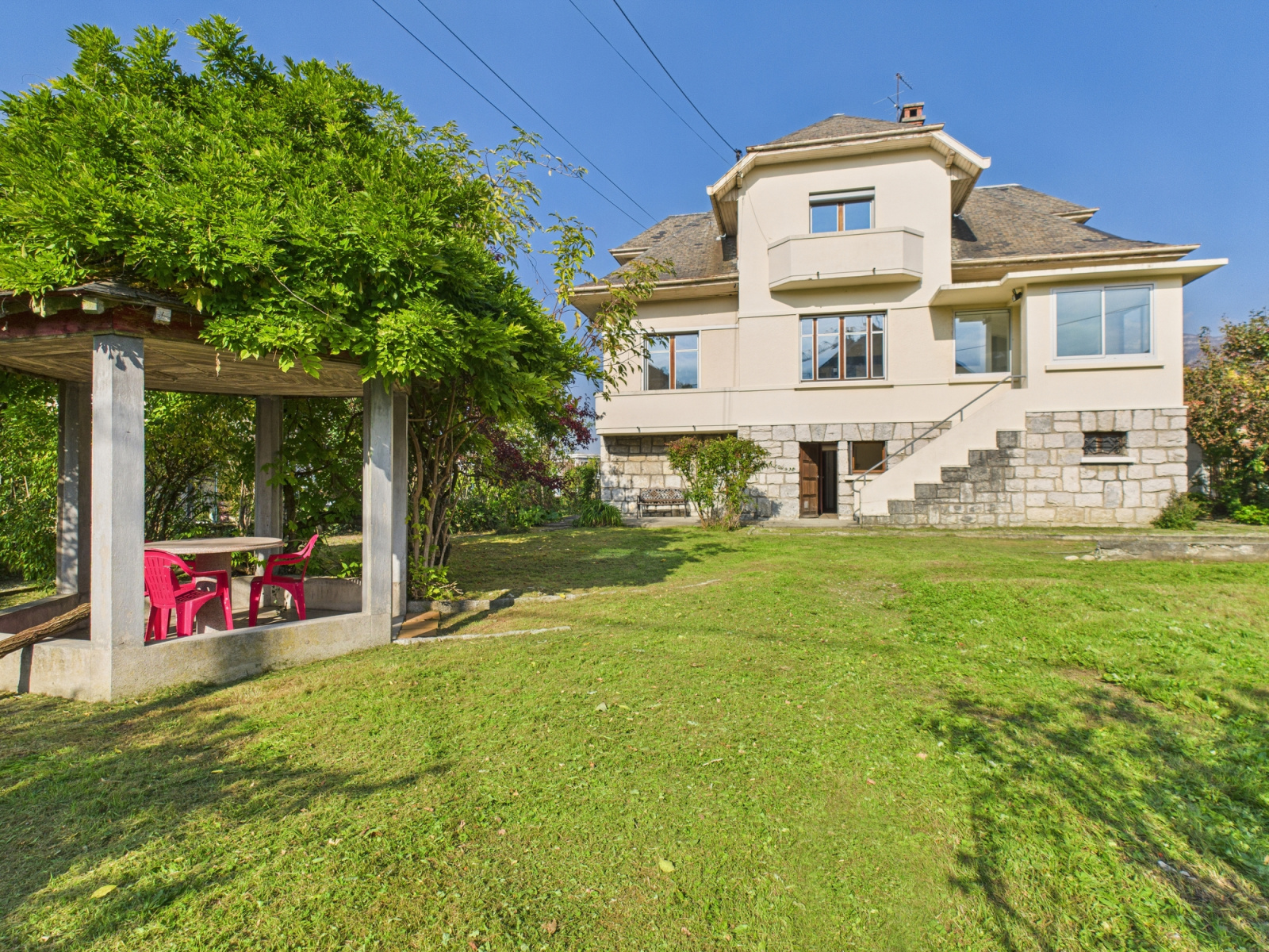 Découvrez cette maison bourgeoise de caractère datant de 1940, d'une superficie d'environ 135m² édifiée sur un terrain plat de 825m², à seulement 10 minutes à pied du centre-ville de Chambéry et de toutes les commodités. Cette demeure de prestige, lumineuse et soigneusement entretenue conjugue le charme de l'ancien et le confort moderne. Dès l'entrée, vous serez séduit par ses moulures d'époque, ses belles hauteurs sous plafond et ses matériaux nobles qui témoignent du soin apporté à sa conservation.