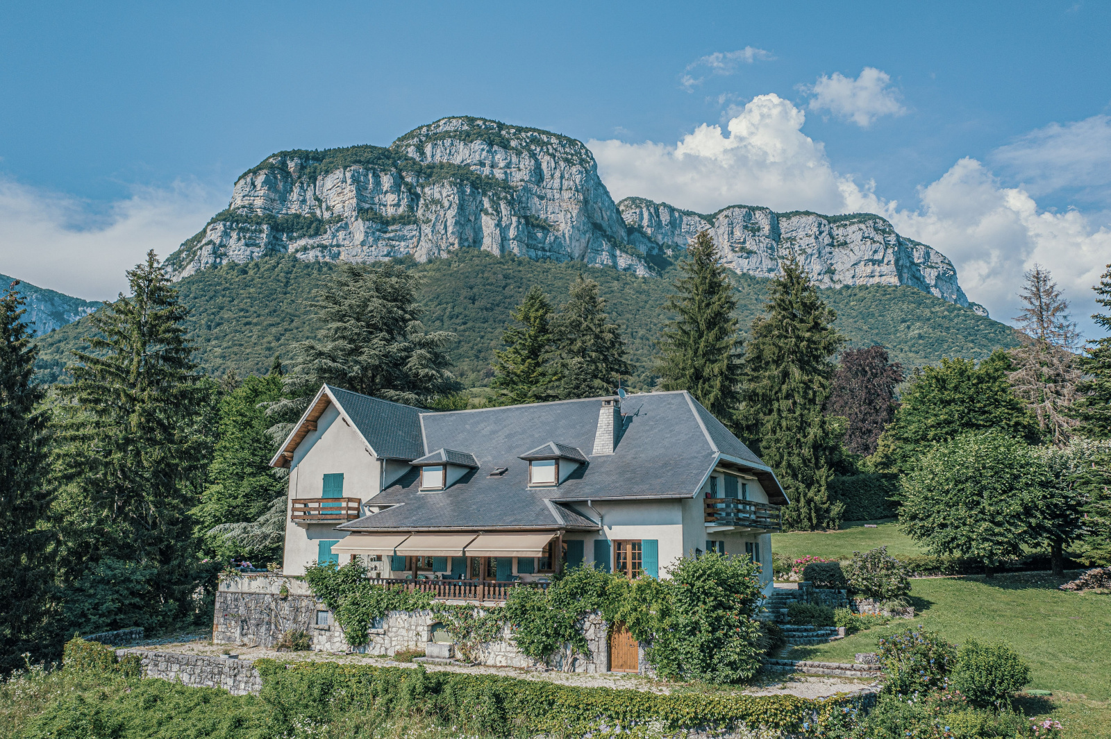 English advertisement : Located near Chambéry, this exceptional property overlooks the valley and offers a wonderful view of Chambery and its mountainous surroundings. This residence combining prestige and comfort, offers a surface of 400 m² spread over two floors and a remarkable interior layout. A first double living room of 80 m² opening to the panorama revealed by its spacious terrace, an independent kitchen, and two parental suites are on the ground floor. Upstairs, there is a second living room and three parental suites. The outside environment, a fenced park of more than one hectare, is soothing and conducive to relaxation. An outbuilding of 40 m² living space, and its two garages, can also be used. 40 minutes away from Annecy, 1 hour away from Geneva.