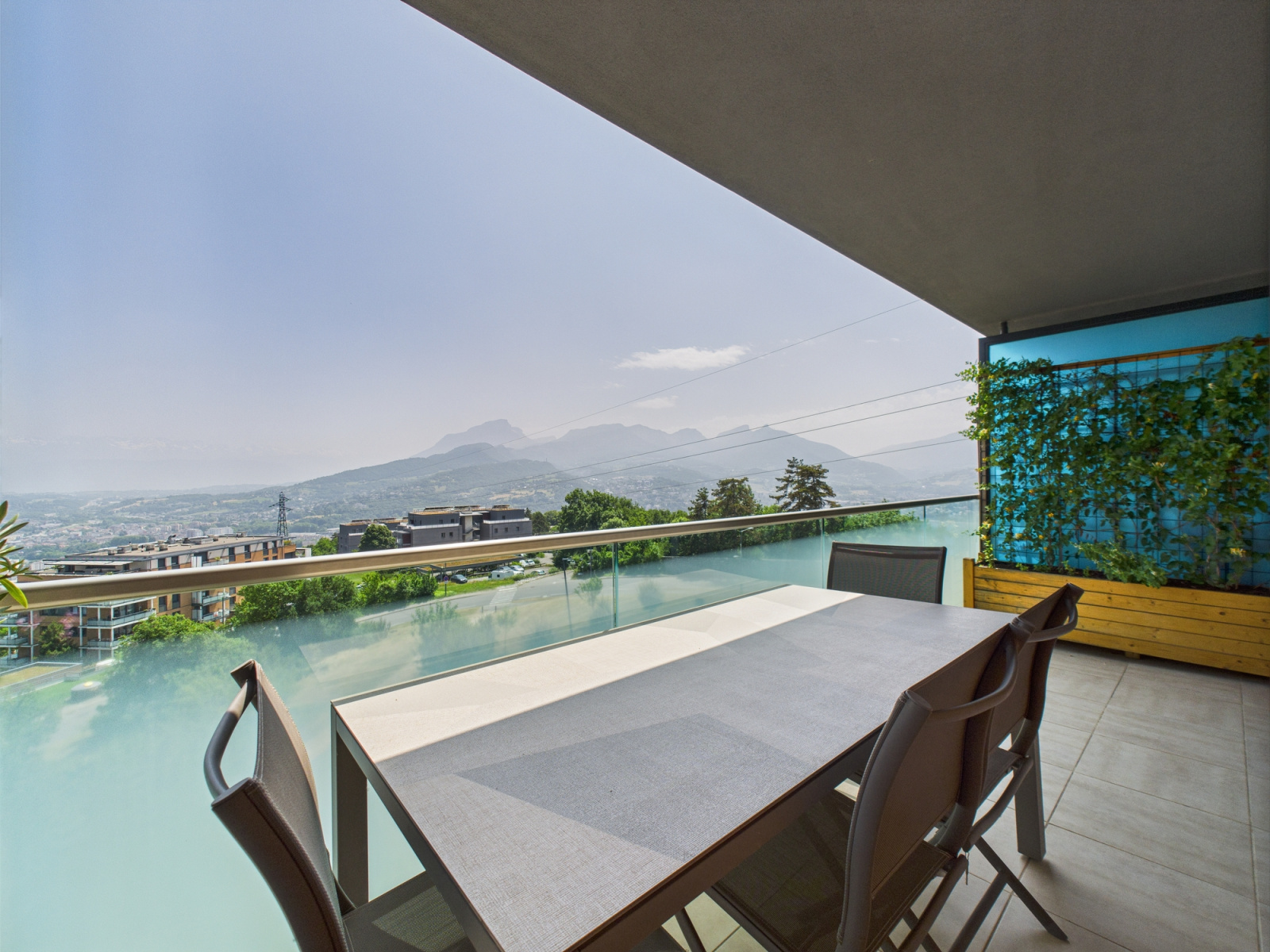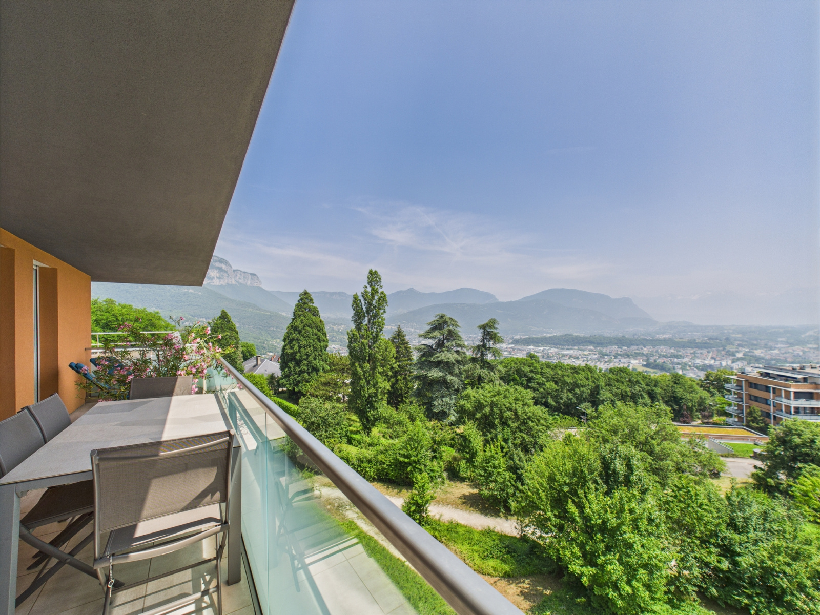 Vous serez immédiatement séduit par la vue imprenable qu’offre l’appartement sur les massifs environnants : le Granier, les Belledonnes et la Croix du Nivolet.