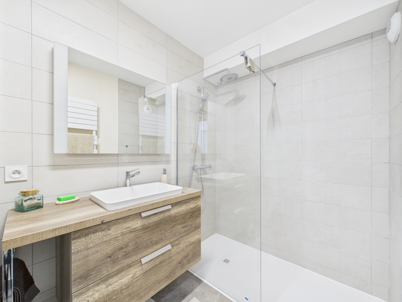 L’espace nuit offre deux belles chambres, une salle de bains entièrement rénovée avec goût, ainsi qu’un WC indépendant, lui aussi refait à neuf.