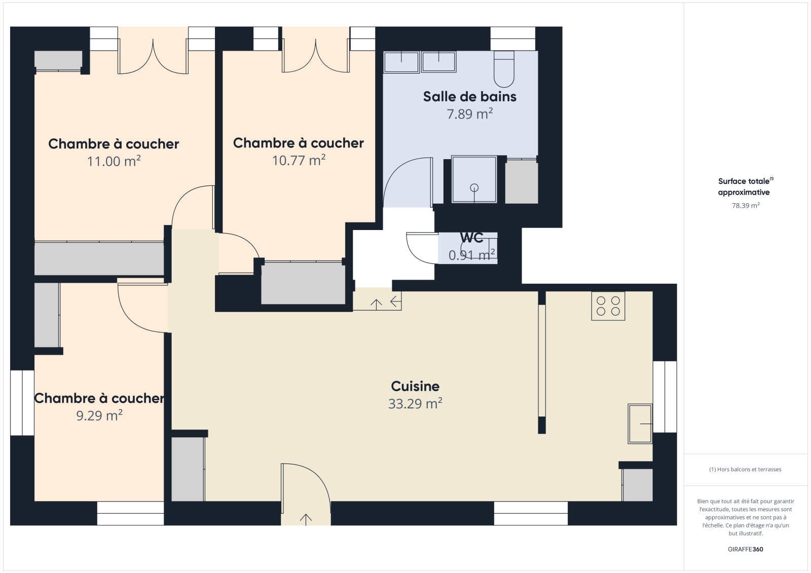 Le bien se compose de 3 chambres lumineuses dont 2 avec un accès direct au Jardin, une belle pièce de vie avec cuisine ouverte de 32m2 avec accès au jardin, une spacieuse salle de bain, et un WC séparé.