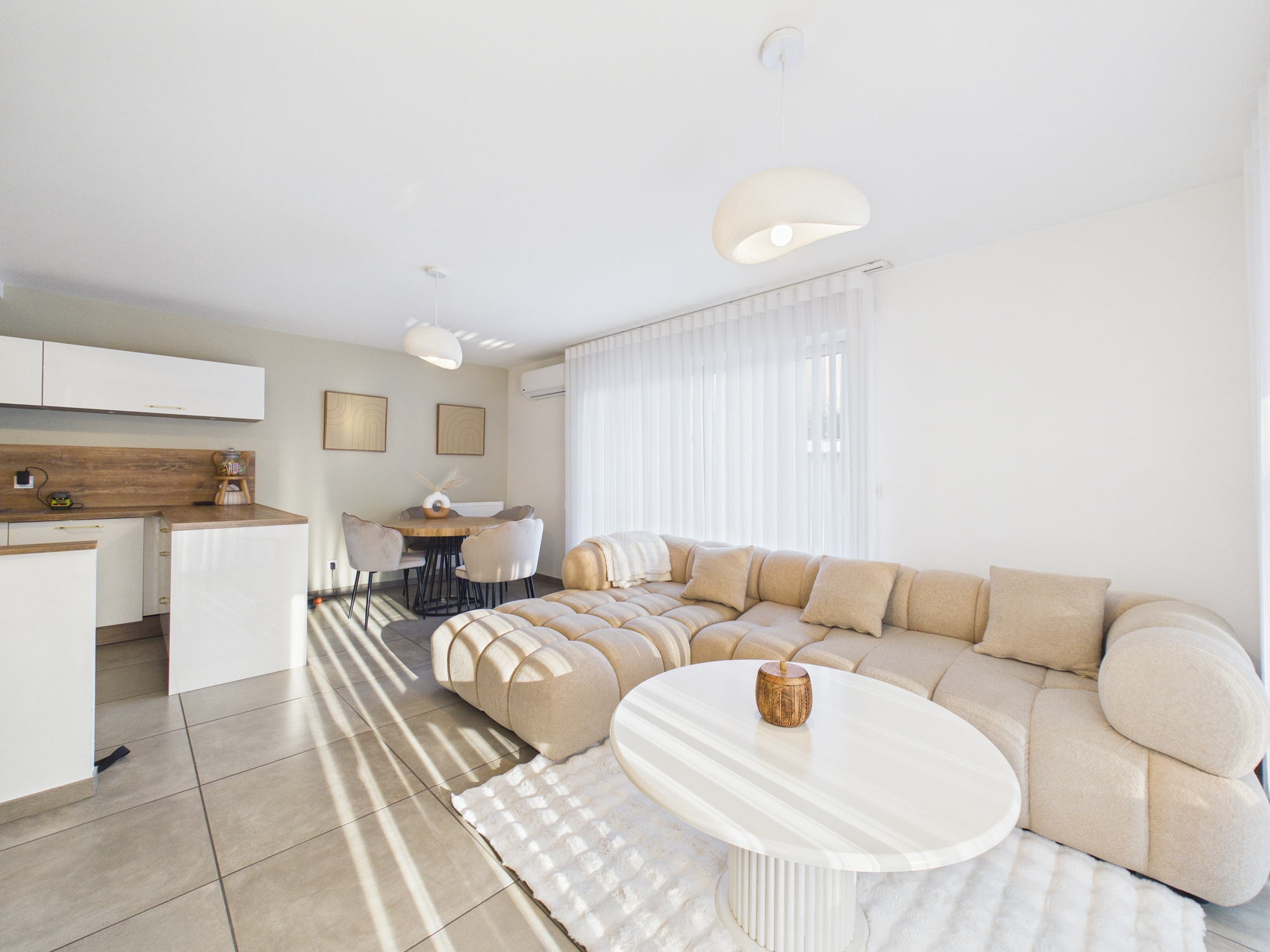 Situé dans une petite copropriété sécurisée, cet appartement alliant confort et modernité se compose d'une belle entrée, d'une grande pièce de vie lumineuse avec sa cuisine américaine entièrement équipée et fonctionnelle ouverte sur le séjour/salle à manger.