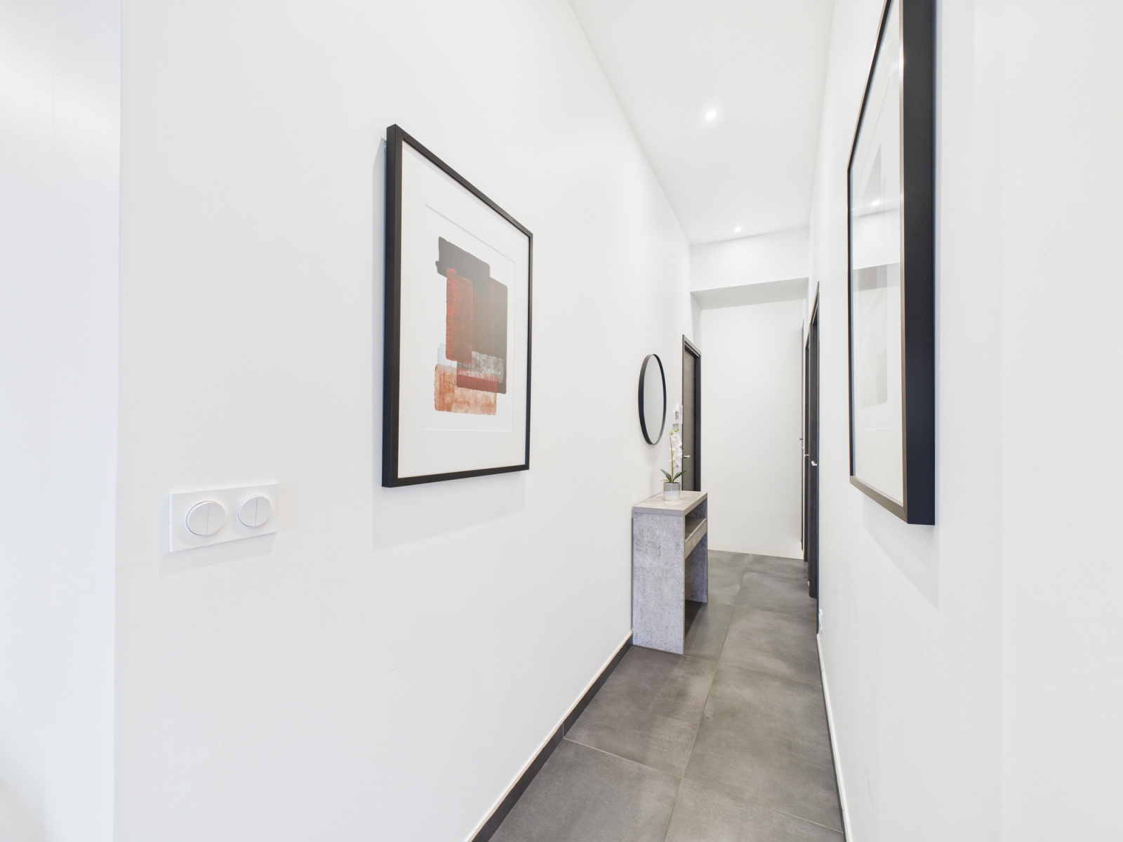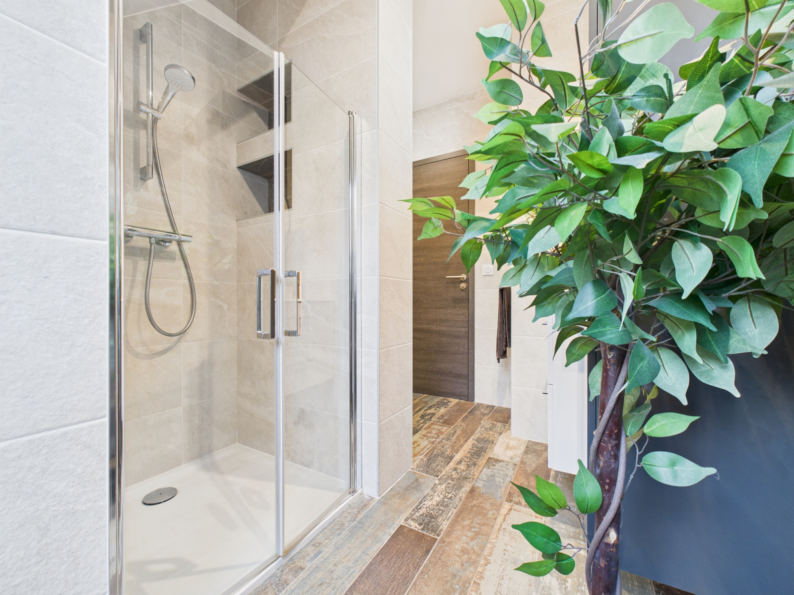 une salle d'eau avec WC. l'appartement est egalement pompe à chaleur avec chauffage au sol, toutes les pieces sont equipées de climatiseur.