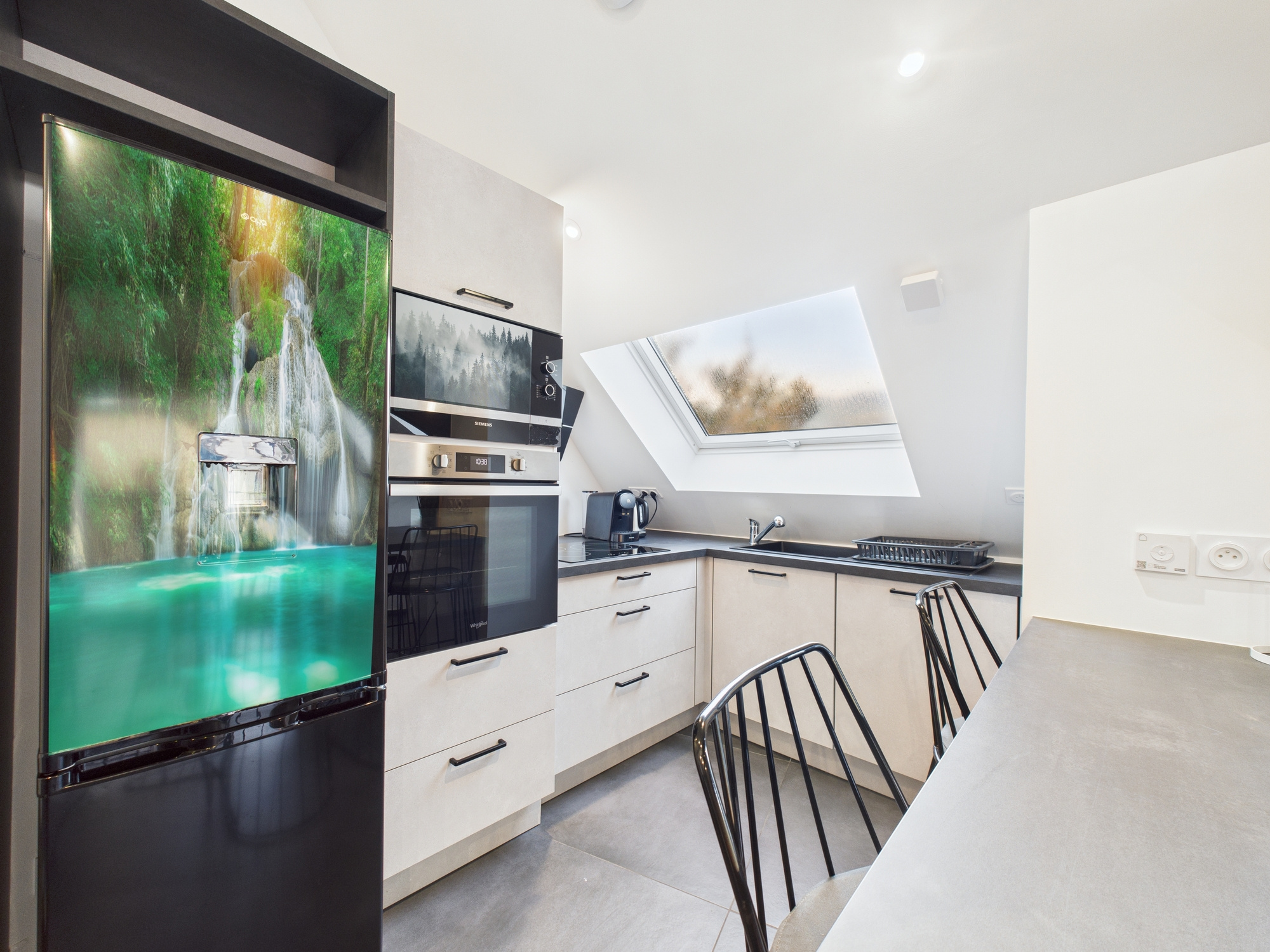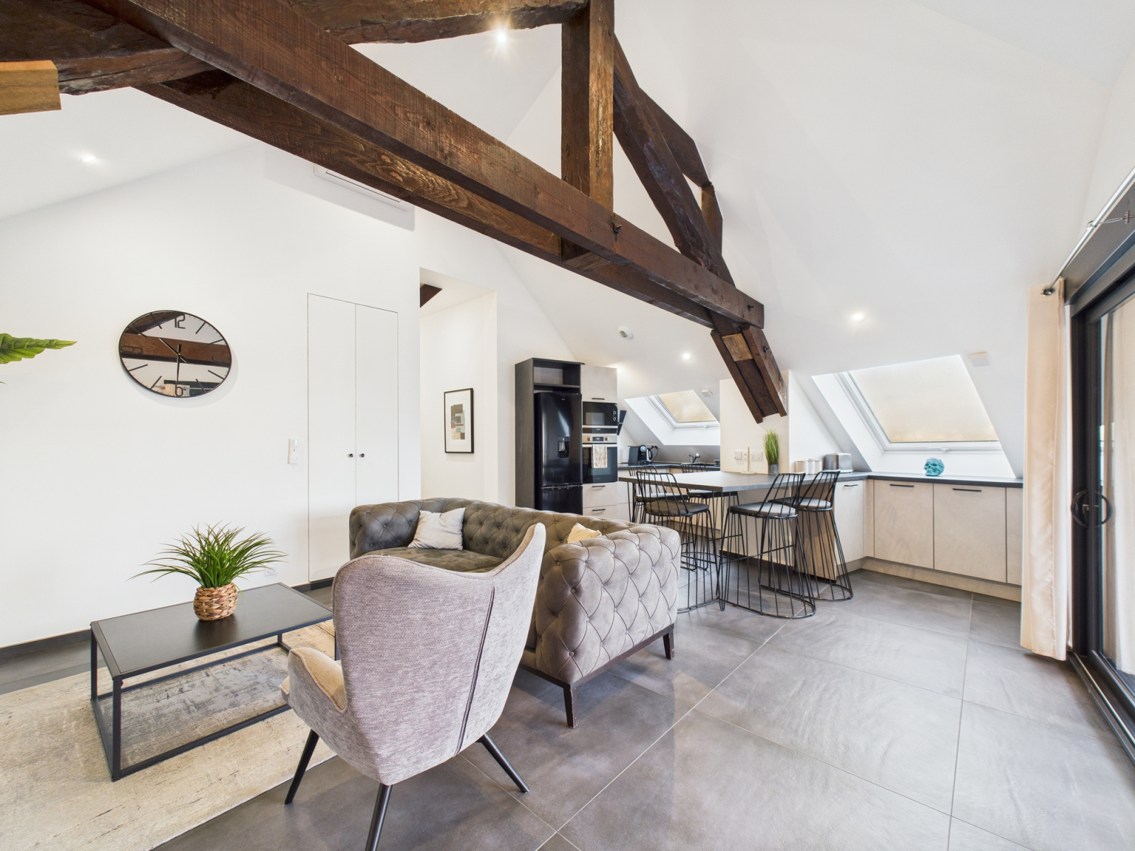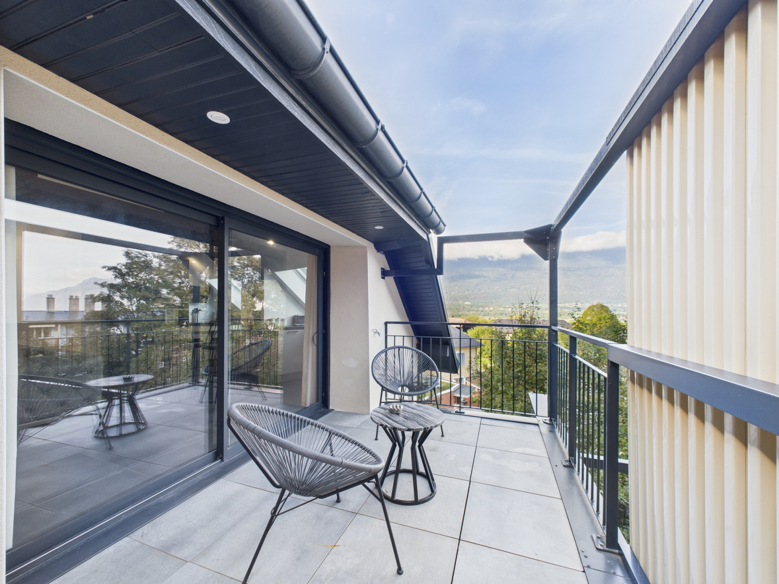 Le bien est composé d'un hall d'entrée, d'une cuisine ouverte sur le sejour donnant acces à une terrasse avec une petite vue sur le lac du Bourget.