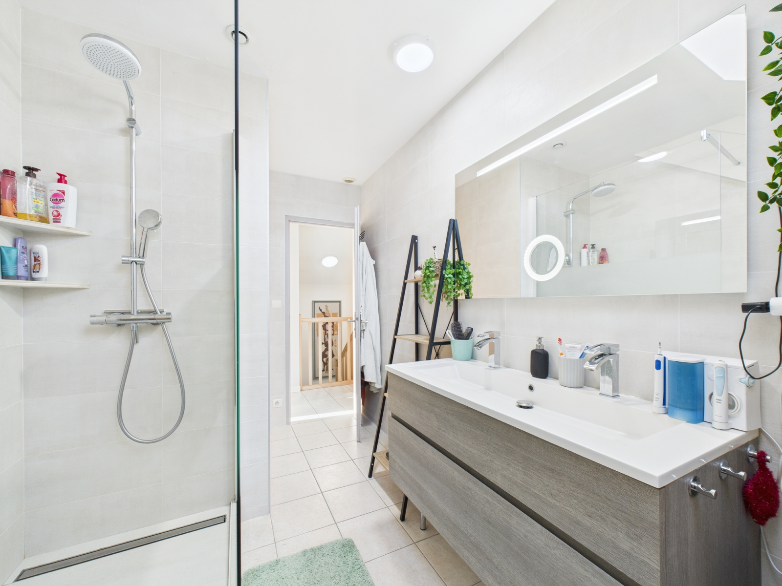 À l'étage, vous disposerez de trois belles chambres accompagnées d'une salle de bain d'un WC et d'un second dressing.