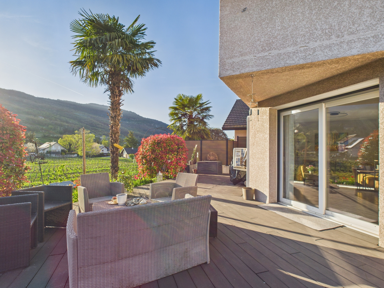 L'avis de l'agence: Cette maison dispose de toutes les qualités, idéale pour une maison familiale: calme, ensoleillement optimal, vue dégagée sur les montagnes, belle construction et parfaitement entretenue. Son beau jardin bien exposé est un réel atout ainsi que le garage parfait pour stationner son véhicule et permettre de nombreux rangements. L'accès rapide à l'autouroute est un vrai plus.