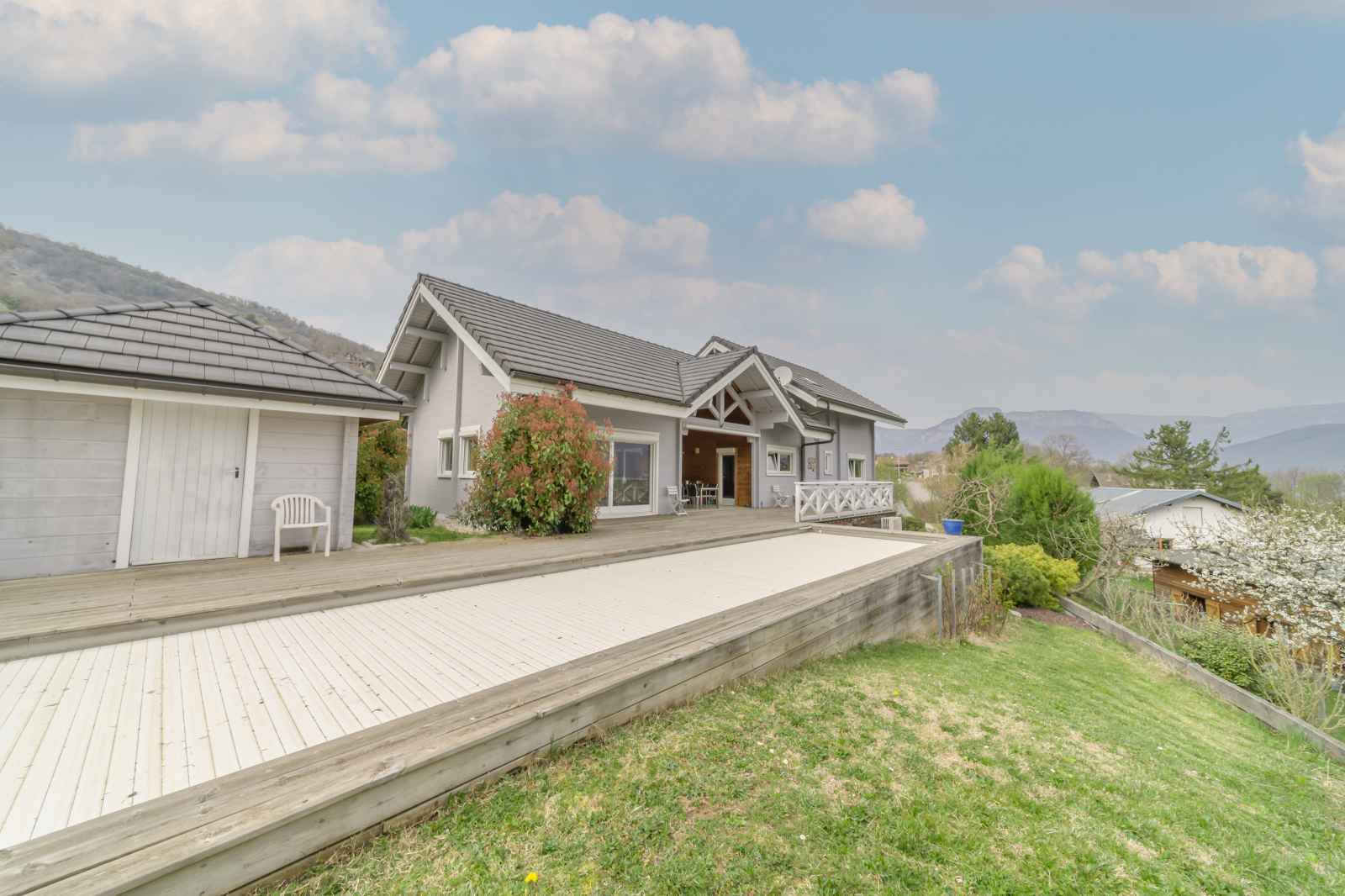 Sur les hauteurs de la commune de Saint-Baldoph (73190), l'agence EASY VENTE IMMO vous propose cette magnifique maison en construction bois de 2004 de 167m² sur un terrain de 1557m². Au rez-de-chaussée, vous profiterez d'une grande entrée desservant un agréable salon lumineux avec quadruple exposition, une cuisine séparée et équipée, un espace repas spacieux, une chambre avec dressing et une salle de bain avec douche et baignoire. La maison est imprégnée d’une ambiance chaleureuse avec poutres apparentes, une très grande hauteur sous plafond et présence du bois dans toutes les pièces. A l’étage, une mezzanine distribue 2 chambres spacieuses, un bureau, un WC et une petite salle d'eau. A l’extérieur, vous profiterez d’une grande terrasse couverte et d’une terrasse qui se prolonge le long de la maison et s’ouvre sur le vaste terrain avec une vue splendide et panoramique sur les montagnes. De plus, vous bénéficierez d’une belle piscine et d’un grand local piscine et d'unun abri de jardin. La maison dispose d’un garage double qui vous permettra de garer deux voitures en plus des places de parking disponibles devant la maison et disposer de rangements supplémentaires grâce à son sous-sol complet. Le chauffage est assuré par une pompe à chaleur ainsi qu’une chaudière au fioul. Les honoraires sont à la charge de l'acquéreur : Prix de vente : 600 000€ + 24 000€ d'honoraires TTC. Pour plus d’informations et prévoir une visite : contacter Marine MANTAUT au 06 12 25 56 93 ou par mail : contact@easyventeimmo.fr.