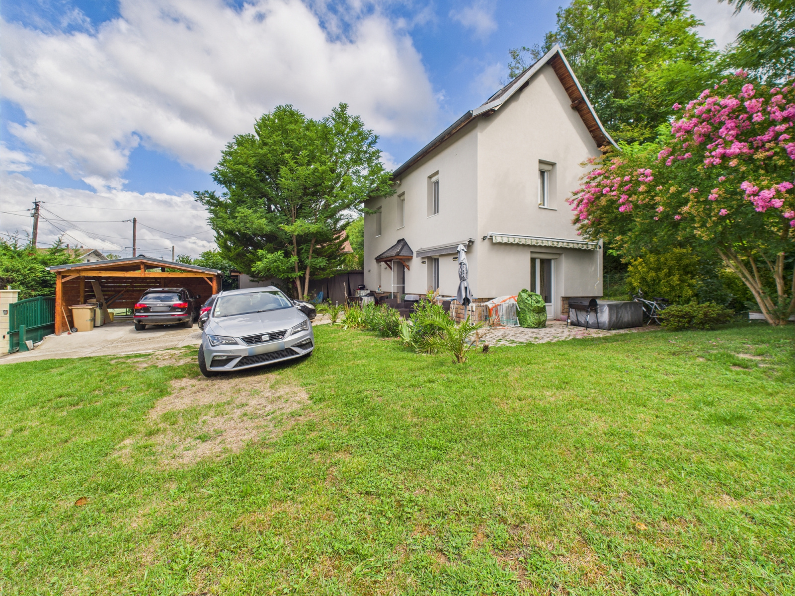 Côté dépendance vous trouverez un carport avec deux places de parking, une cave en sous-sol et un terrain de 1200 m2 environs.