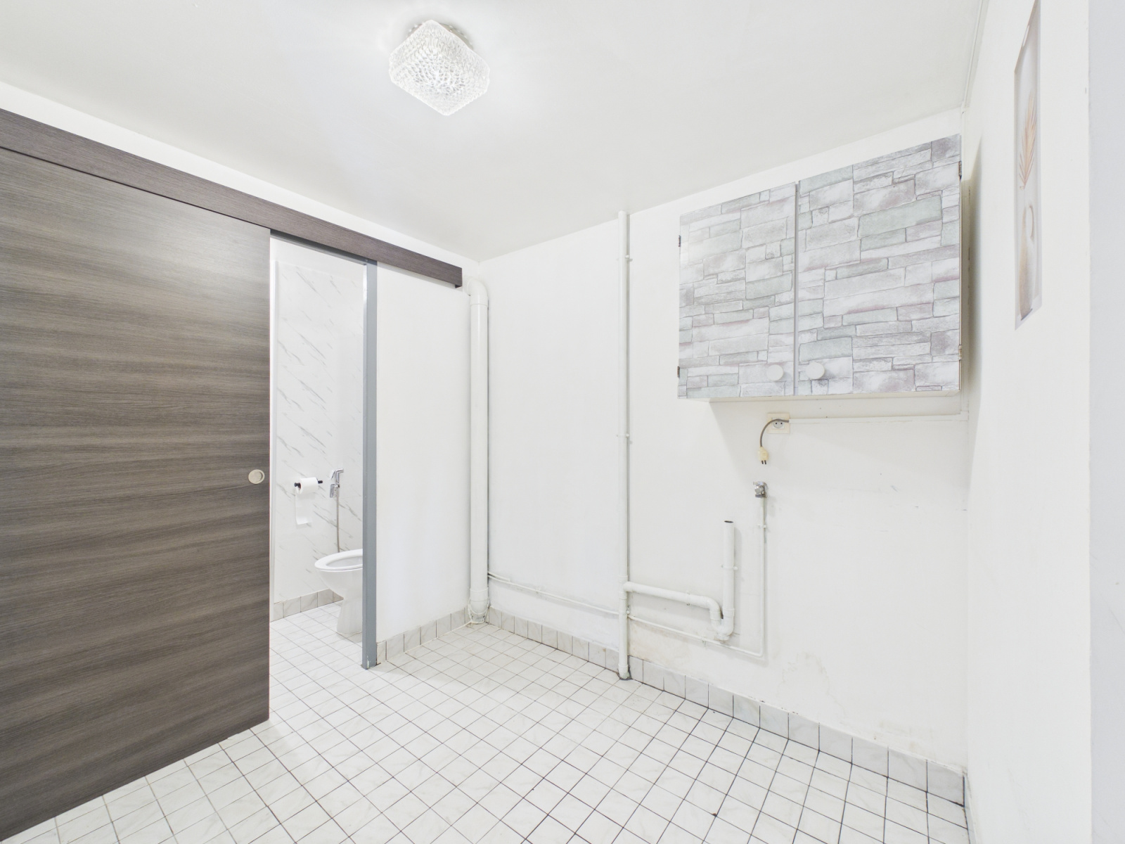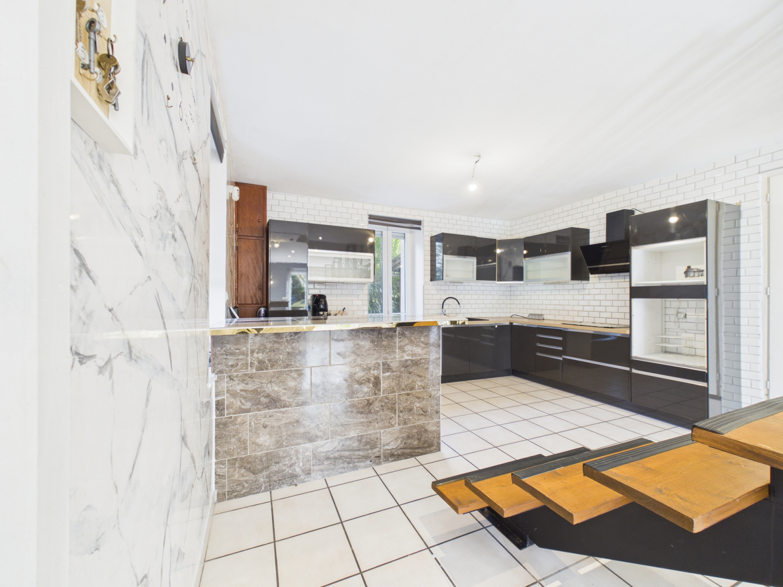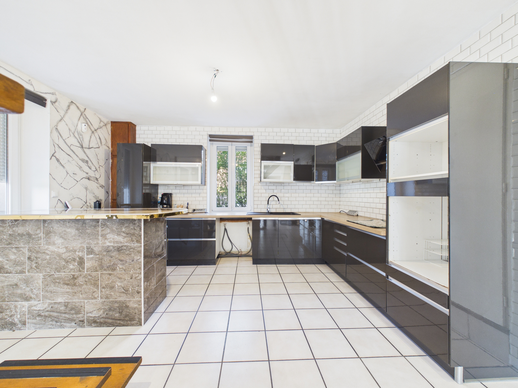 Une cuisine ouverte sur le séjour, une buanderie, une salle d'eau avec WC.