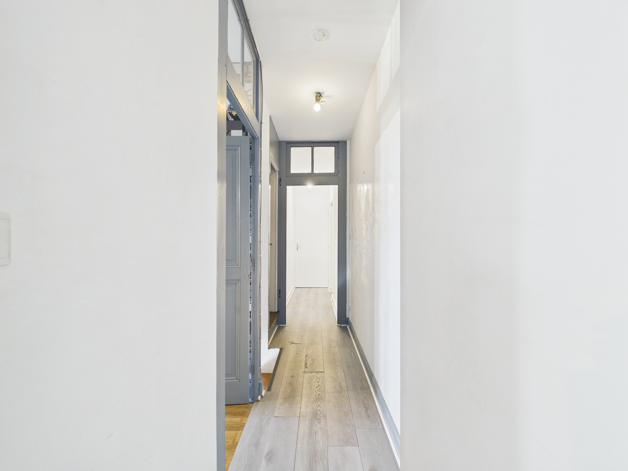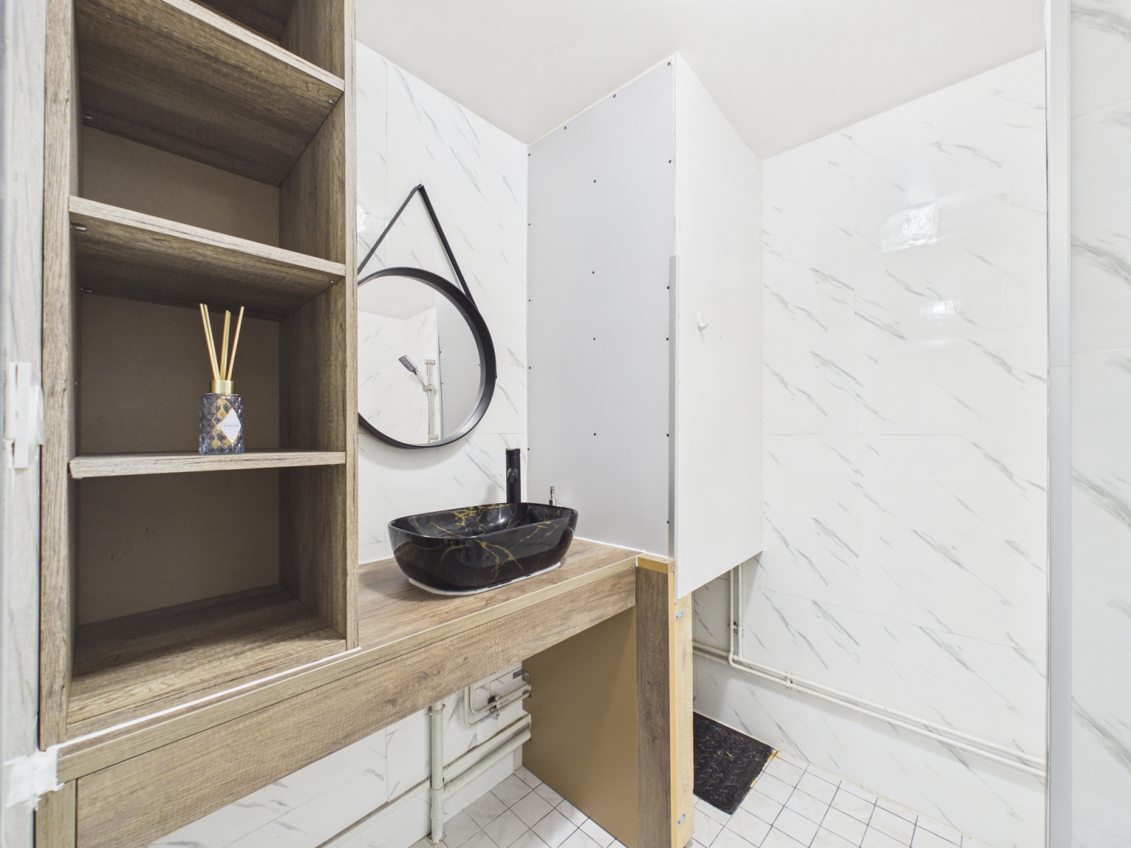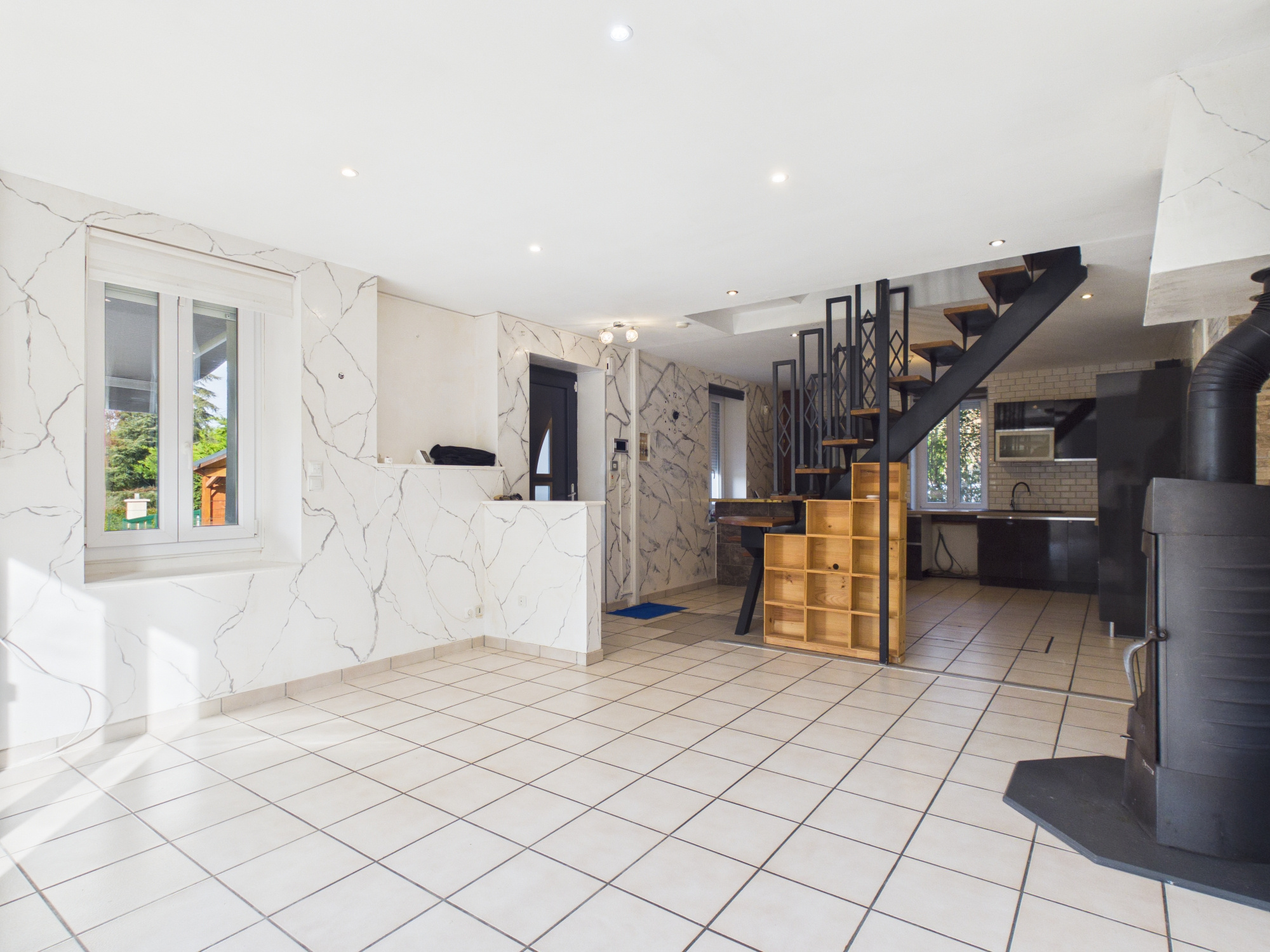 Une cuisine ouverte sur le séjour, une buanderie, une salle d'eau avec WC.