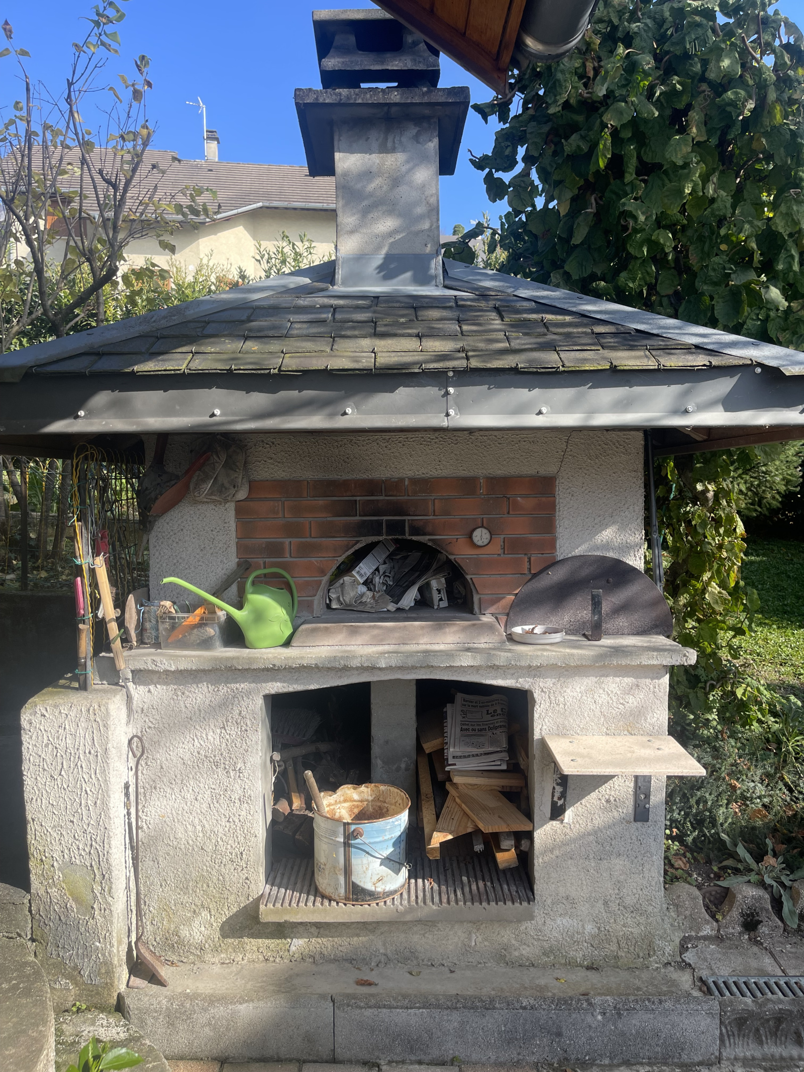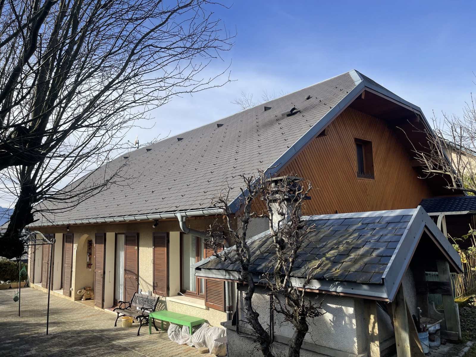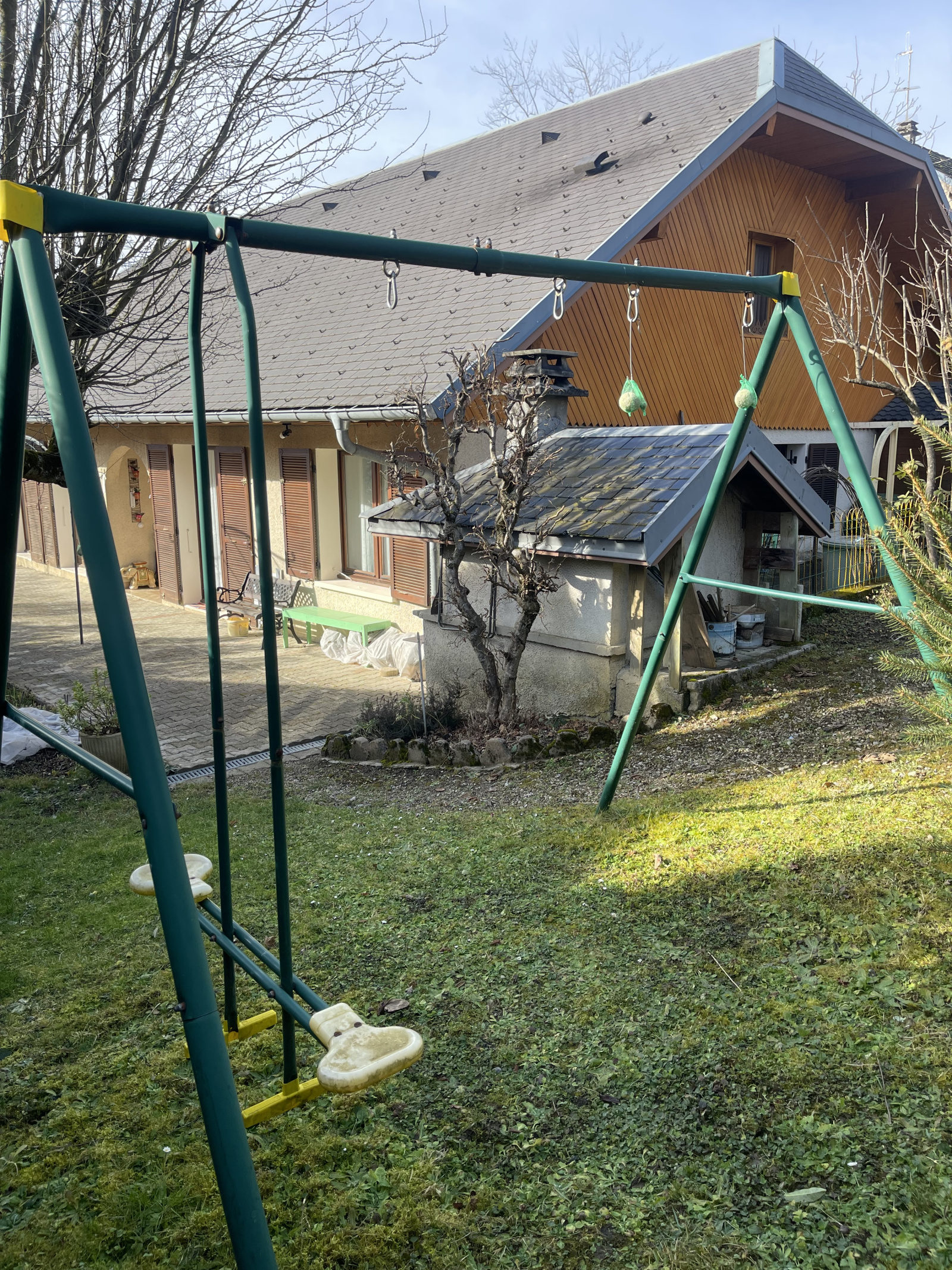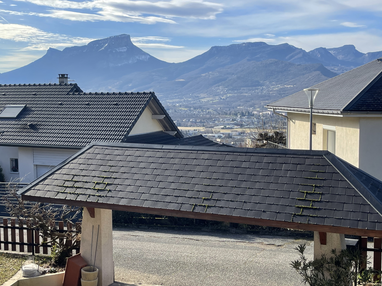 A l'extérieur, une grande terrasse d'environ 42 m2 sur le côté droit de la maison, à l'arrière, un espace de 31 m2 sur lequel se situe un four à pain, un petit chalet en bois, un abri pour ranger le bois ainsi qu'un étendage. Sur le côté gauche, une terrasse d'environ 74 m2, soit 150 m2 de terrasses exploitables. Pour prolonger ces terrasses, vous trouverez un jardin arboré, tout autour de la maison. Vous avez une belle vue sur le granier et les montagnes environnantes.