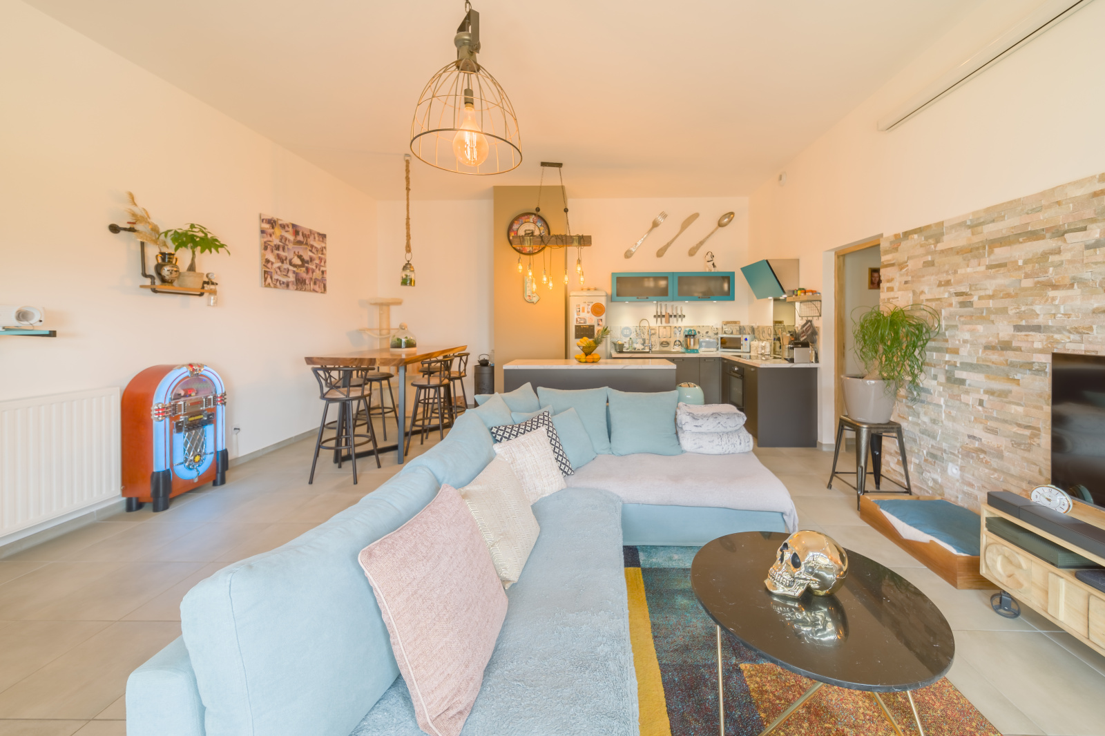 Au sein d'une construction de 2019 dans un secteur calme, vous pourrez profiter d'un grand séjour avec cuisine ouverte de 37m² donnant sur une terrasse et jardin de 145m² orienté Ouest.