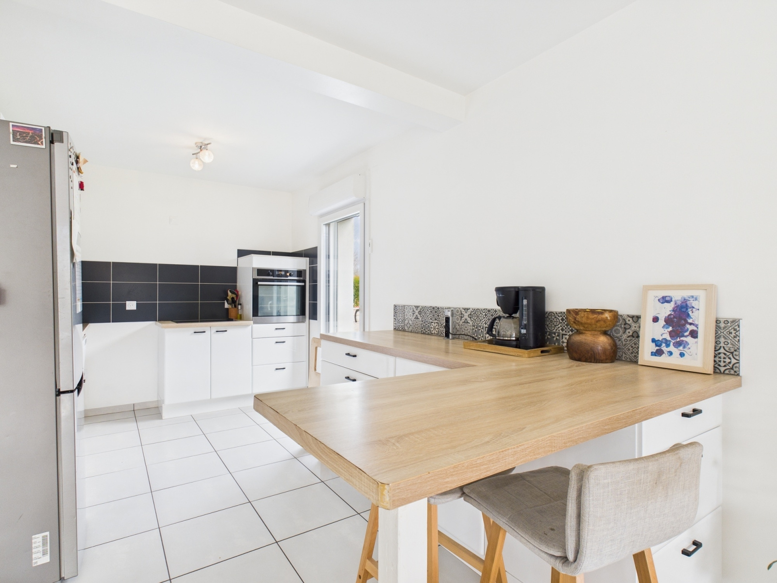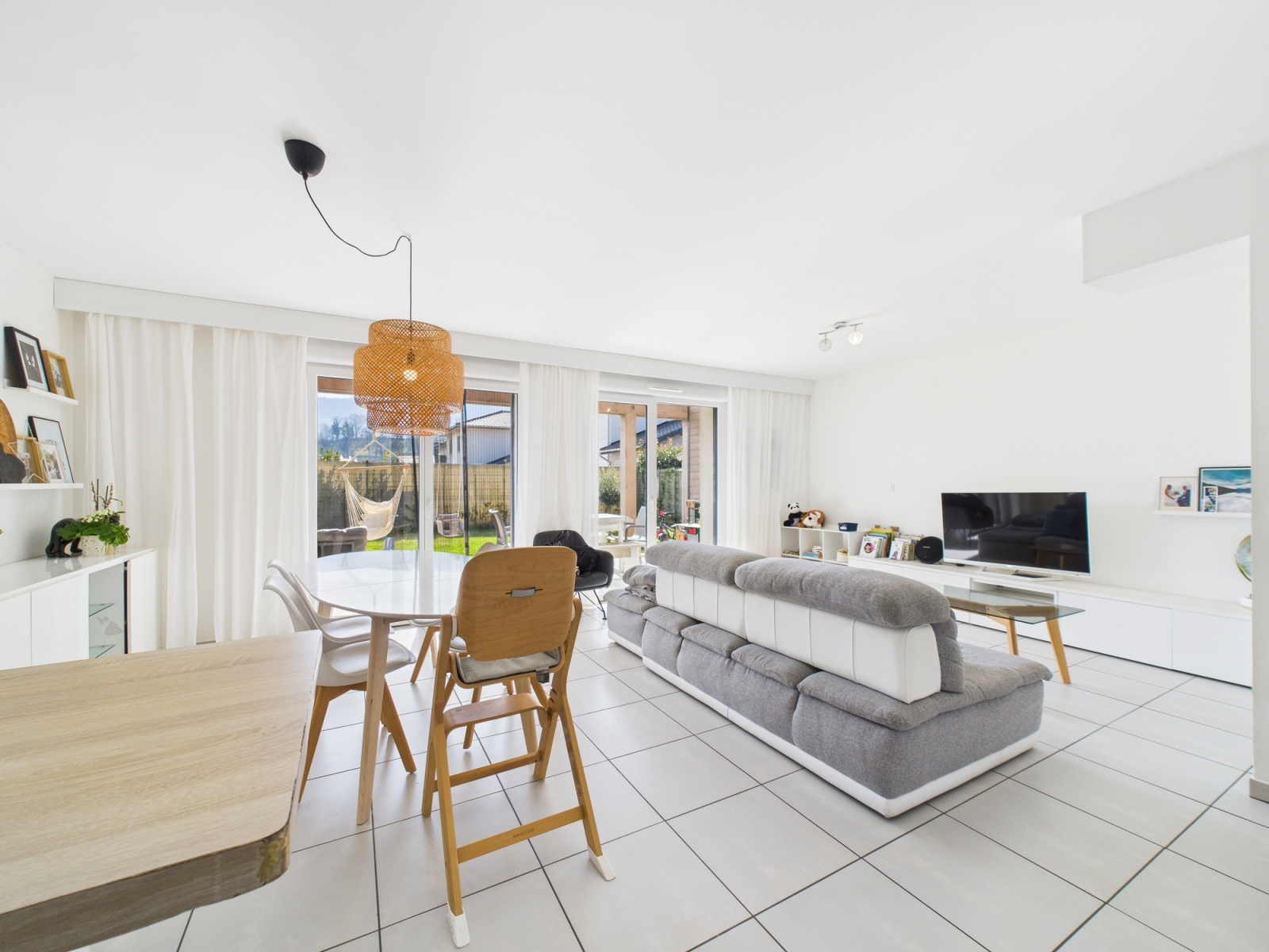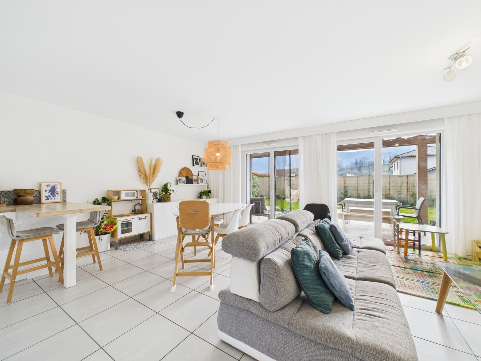 Au rez-de-chaussée, vous trouverez un hall d'entrée spacieux, un WC, ainsi qu'une cuisine ouverte sur un salon-séjour très lumineux de 40m².