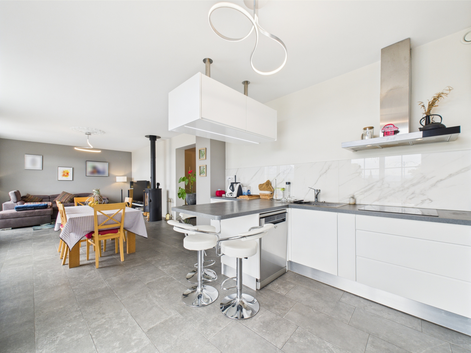 Au second niveau vous trouverez une salle de jeux, une chambre et une possibilité d'extension d'environs 80m2.