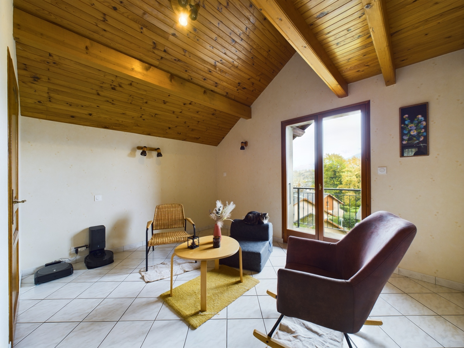 Sur la commune de Chignin dans un secteur calme, avec vue dégagée sur les montagnes, découvrez cette charmante maison de 140m2 utiles dont 118m2 carrez, édifiée sur un terrain de 1370 m2, idéale pour une famille recherchant calme, espace et confort.