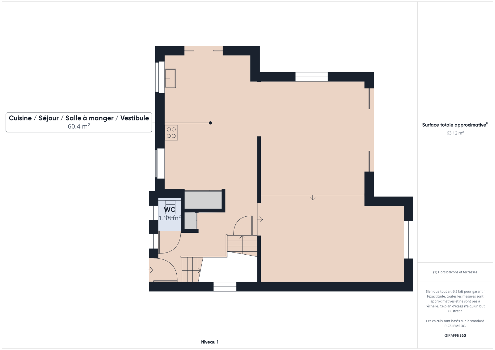 Au premier étage, profitez d'un bel espace de vie lumineux composé d' une cuisine aménagée et un vaste salon / salle à manger donnant accès directement aux espaces extérieurs jardin, terrasse etc, idéal pour recevoir vos proches et profiter de moments de convivialité. Au même niveau se trouve un WC et un pallier pour l'accès à l'étage.