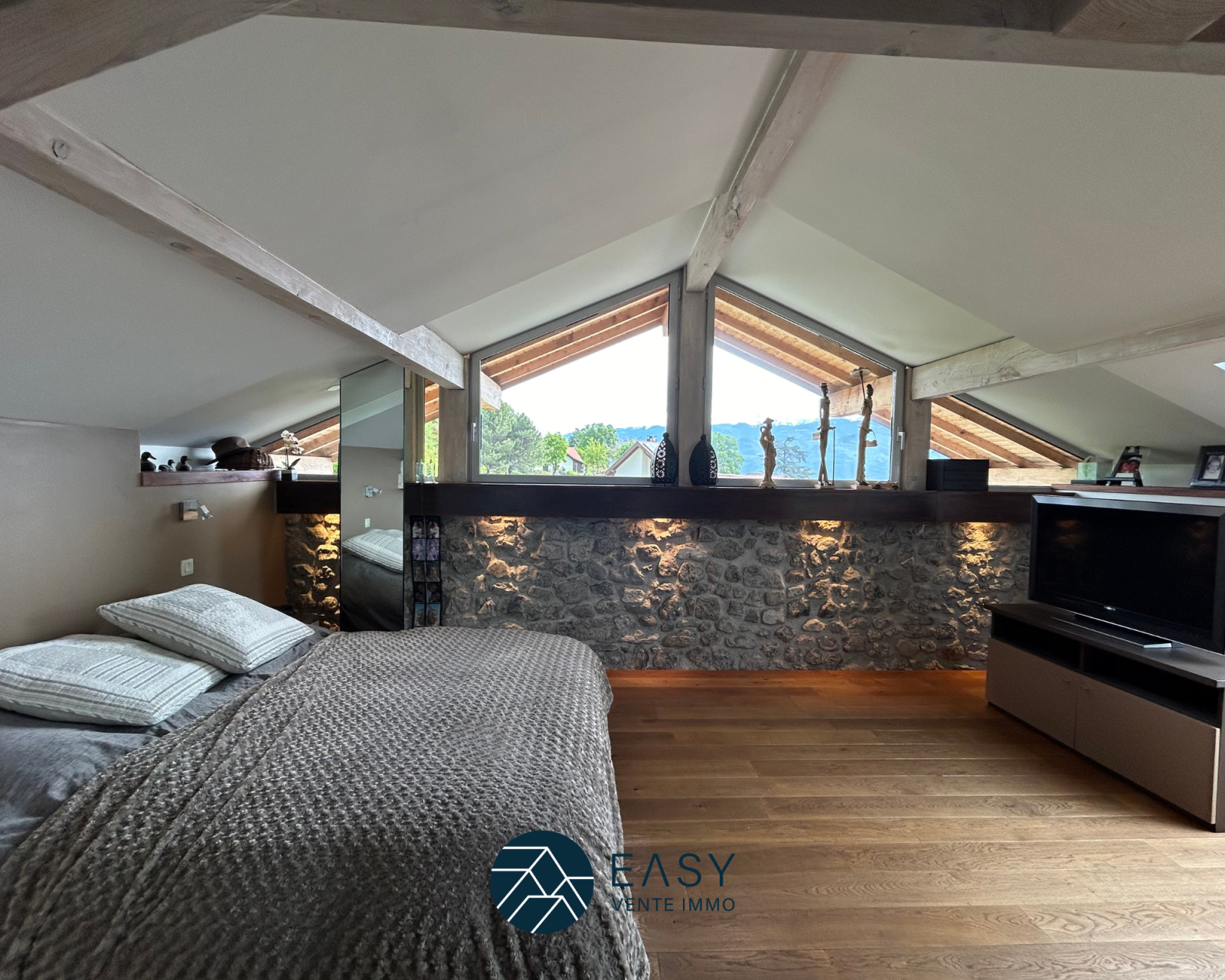 Sur les hauteurs de St Ismier venez découvrir cette ancienne grange entièrement rénovée de 159 m² sur 3 niveaux. Les propriétaires ont su allier le cachet de la maison avec ses pierres apparentes et le moderne.