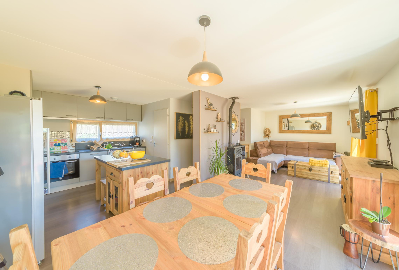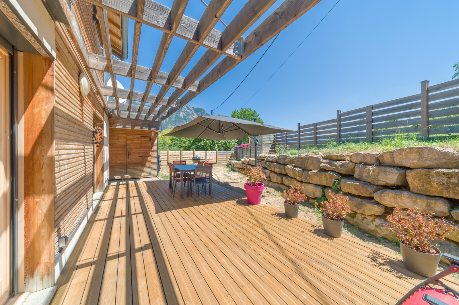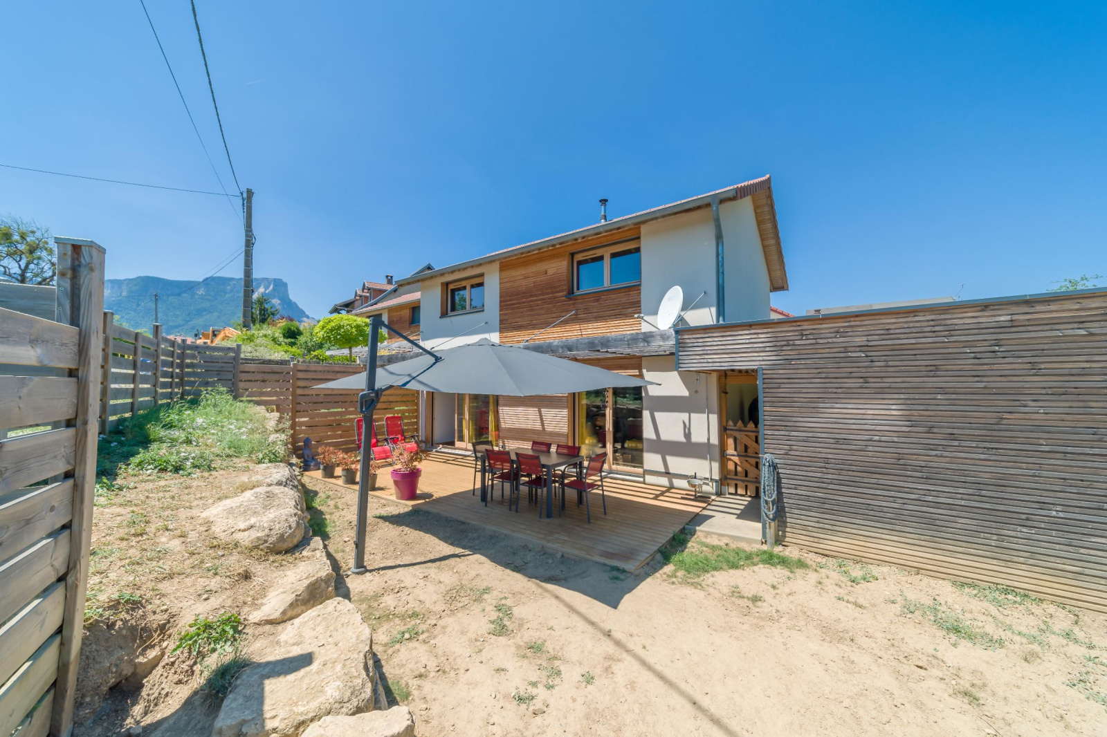 Belle maison bois d'environ 86m² sur un terrain de 283m² de 2016. Elle se compose au rez-de-chaussée d'une entrée, d'une cuisine entièrement équipée et ouverte sur la pièce de vie très agréable. Cette dernière s'ouvre sur une grande terrasse de 40m² avec vue sur la Savoyarde d'une part et le Mont Granier d'autre part. A l'étage vous trouverez 3 chambres, une belle salle d'eau. Un W.C à chaque étage. Nombreux rangements. Poële à granulés. 2 places de stationnement couvertes. Belle vue montagne. Chauffe eau thermodynamique. Volets électriques. Taxe foncière 692 € annuel. DPE: B GES: A (Diagnostics ancienne version valable jusque fin 2022). Frais d'agence charge vendeur. Contactez votre agence EASY VENTE IMMO au 04 79 70 88 64 pour prévoir une visite.