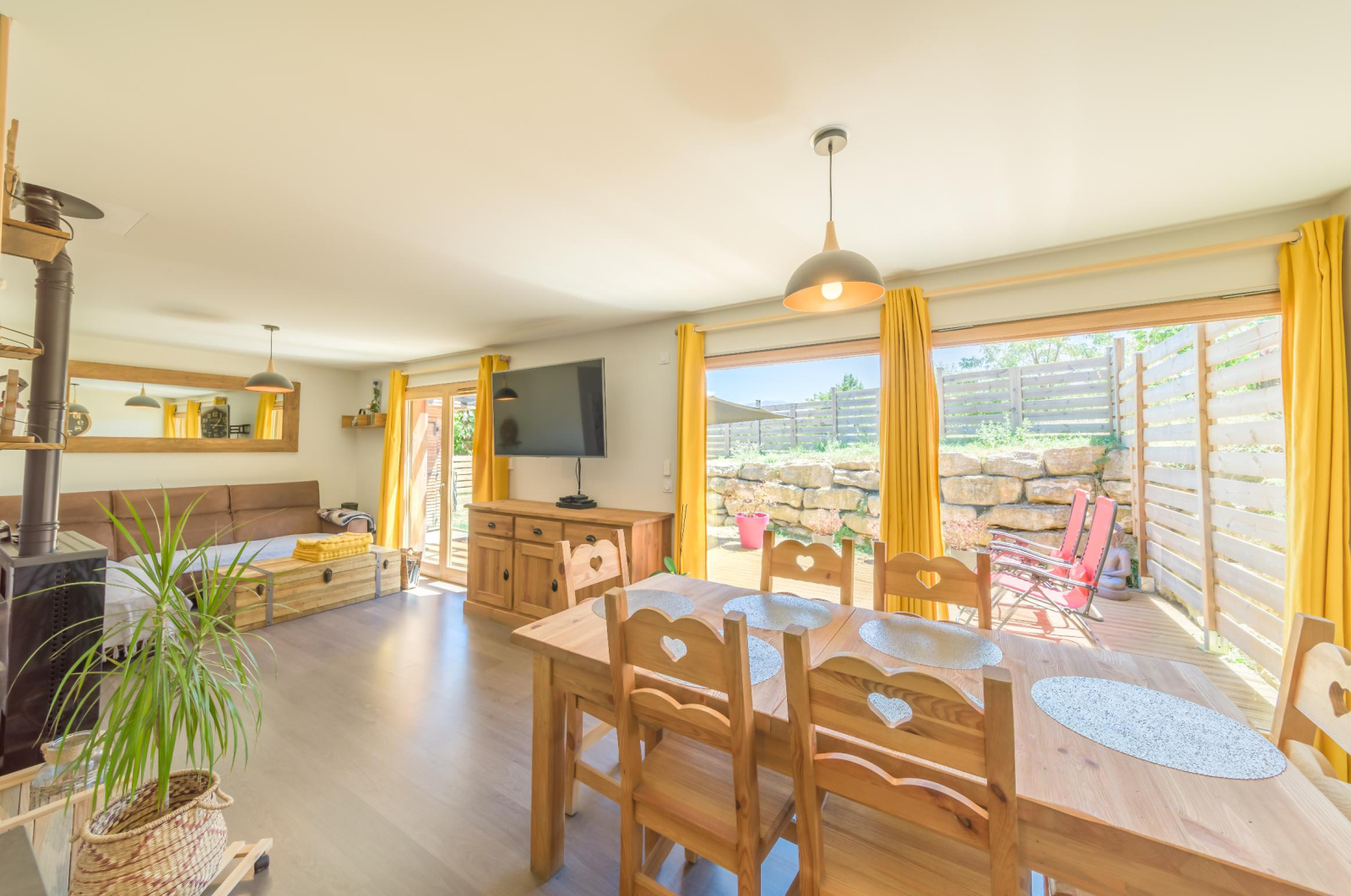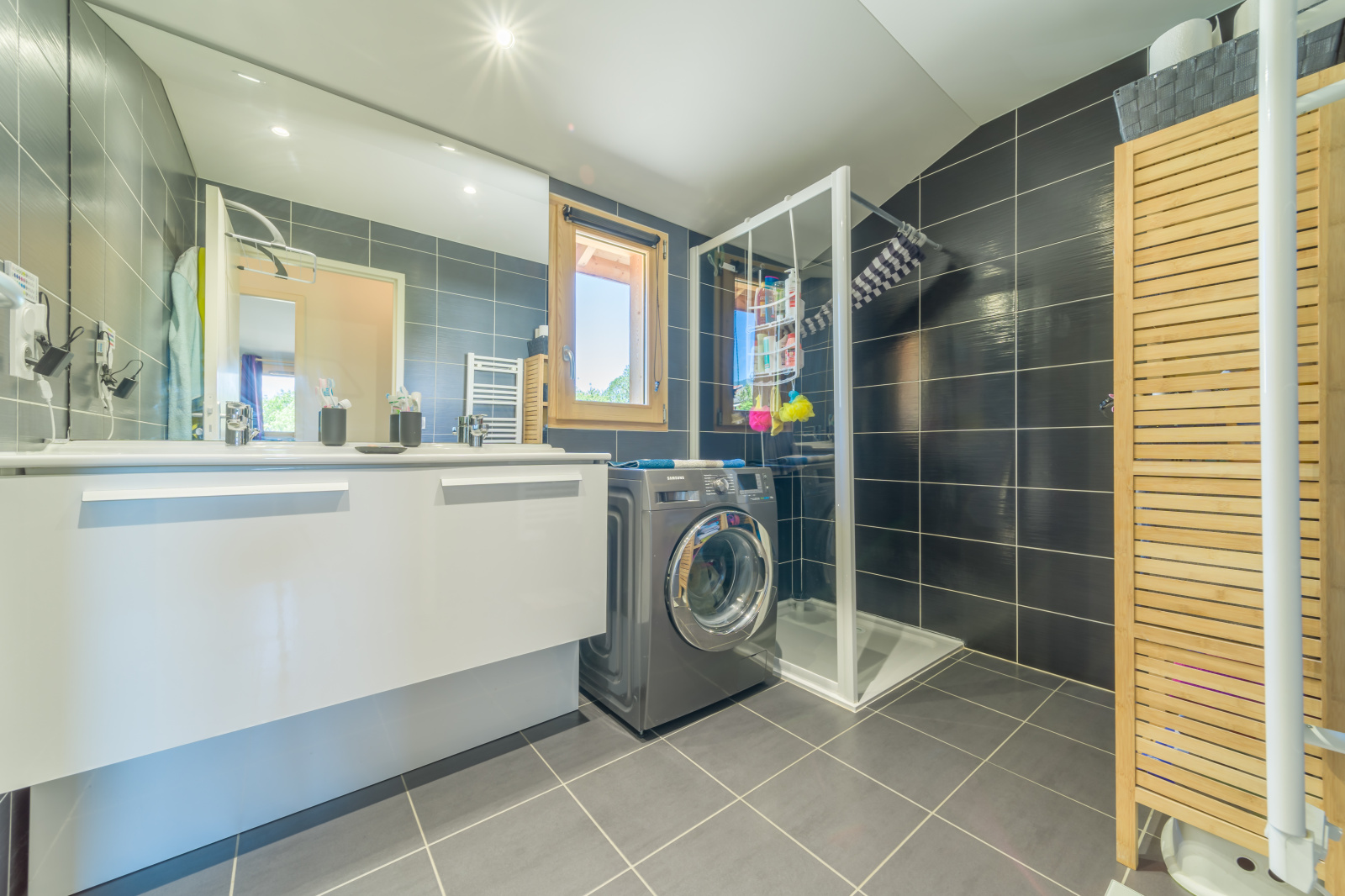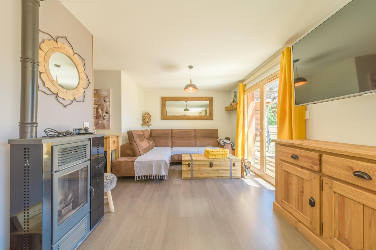 Belle maison bois d'environ 86m² sur un terrain de 283m² de 2016. Elle se compose au rez-de-chaussée d'une entrée, d'une cuisine entièrement équipée et ouverte sur la pièce de vie très agréable. Cette dernière s'ouvre sur une grande terrasse de 40m² avec vue sur la Savoyarde d'une part et le Mont Granier d'autre part. A l'étage vous trouverez 3 chambres, une belle salle d'eau. Un W.C à chaque étage. Nombreux rangements. Poële à granulés. 2 places de stationnement couvertes. Belle vue montagne. Chauffe eau thermodynamique. Volets électriques. Taxe foncière 692 € annuel. DPE: B GES: A (Diagnostics ancienne version valable jusque fin 2022). Frais d'agence charge vendeur. Contactez votre agence EASY VENTE IMMO au 04 79 70 88 64 pour prévoir une visite.