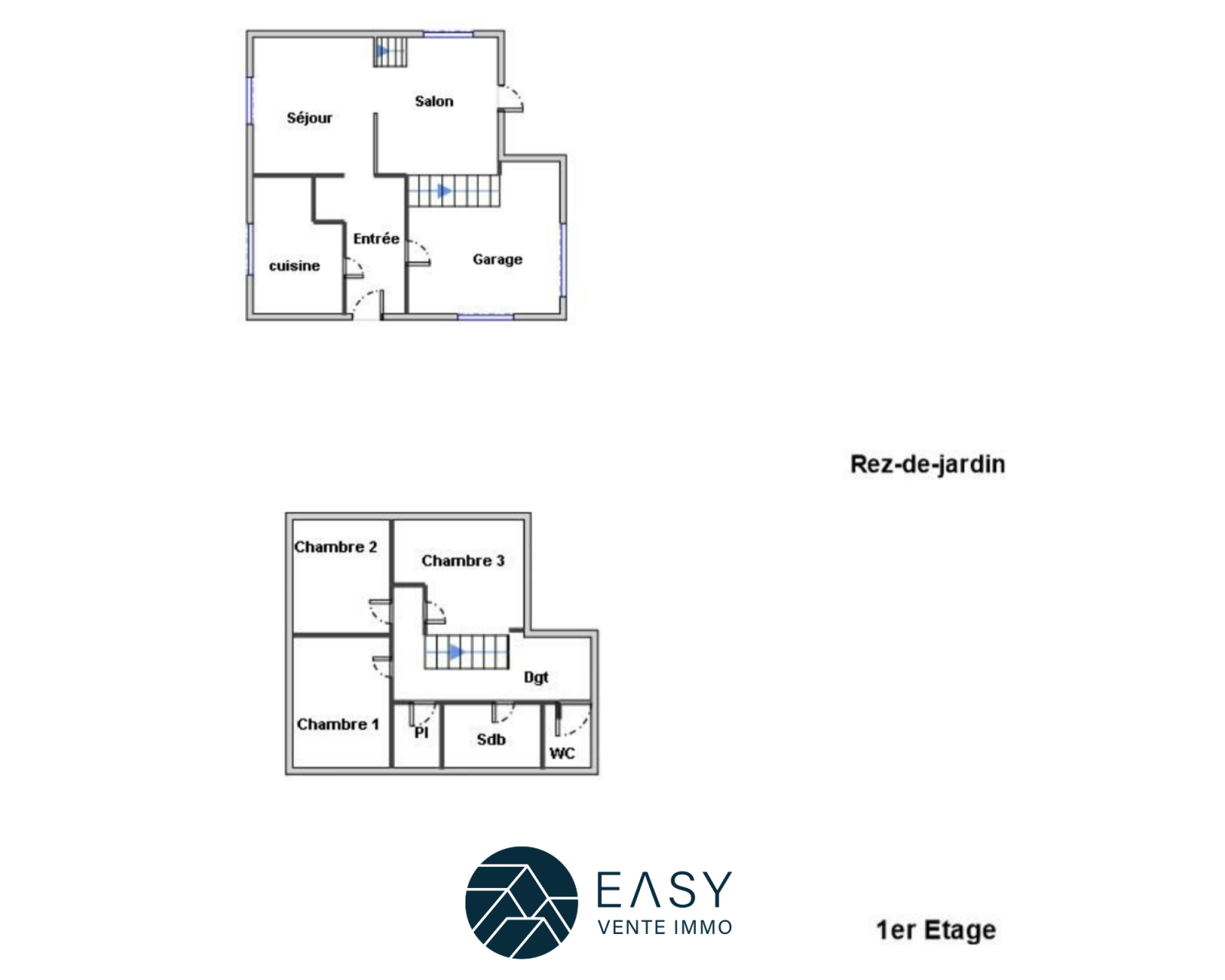 Elle se compose au rez de chaussée d'une entrée, une cuisine, une salle à manger et un séjour et un garage avec wc. L'étage dispose de 3 chambres, un wc, une salle de bain et un petit dressing.